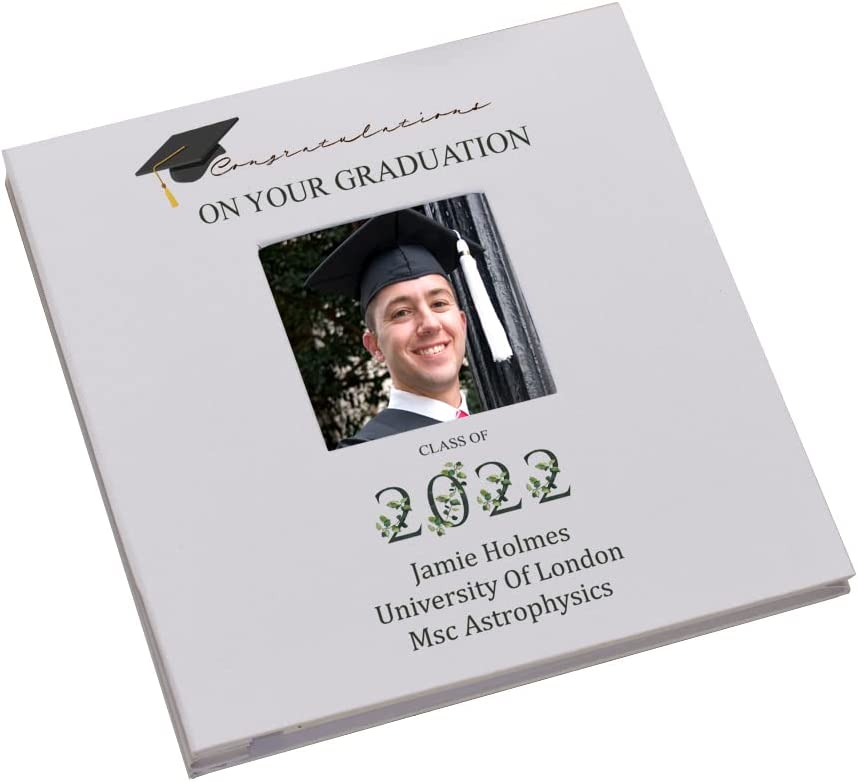 Personalised Graduation Photo Album Linen Cover With Leaf Design