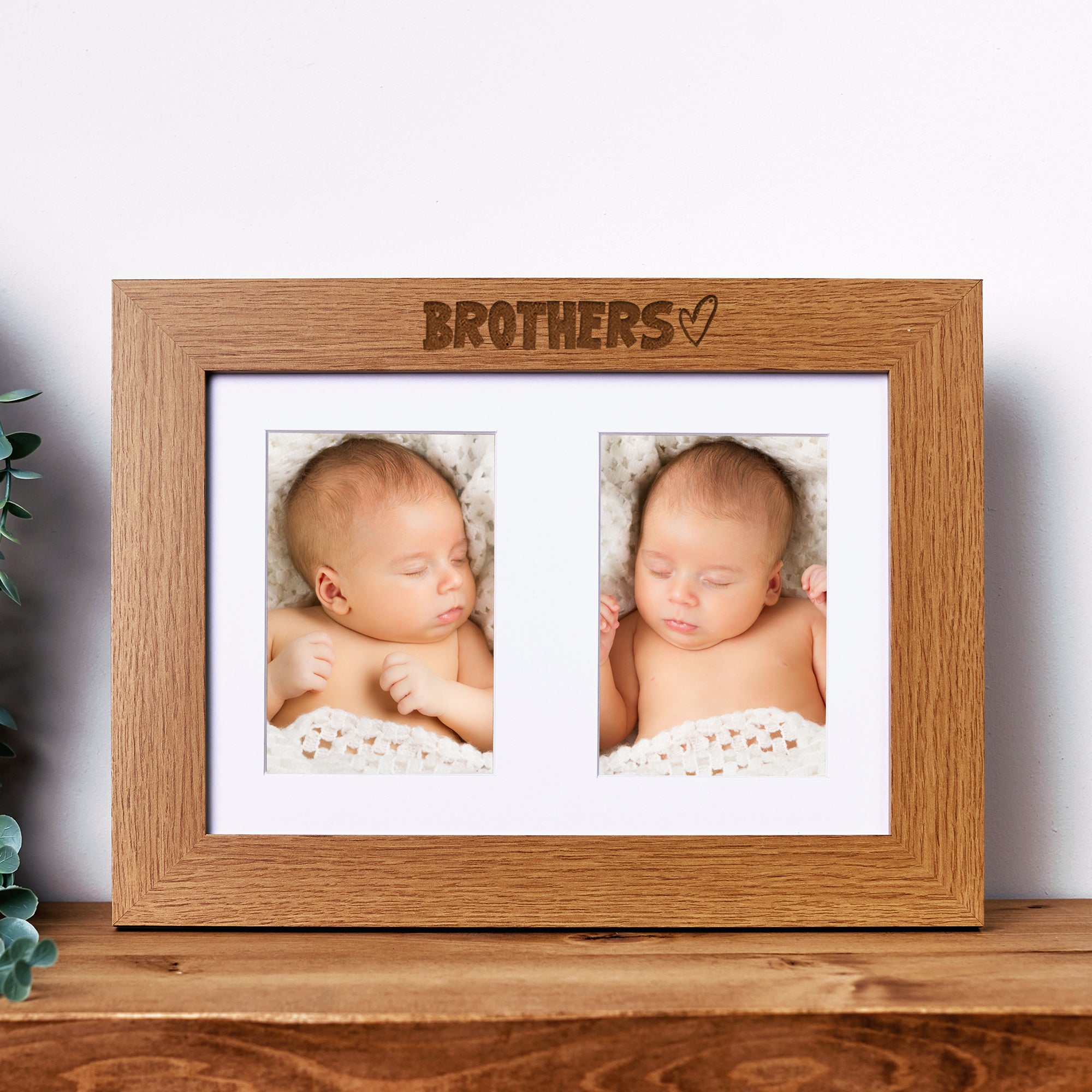 This 6x4 inch double wooden frame is perfect for displaying cherished memories. Perfectly finished with oak wood, it features an engraved tribute to Brother atop a love heart. The frame has two 6" x 4" slots, and measures 41cm x 21cm. Perfect for table top or wall hanging.