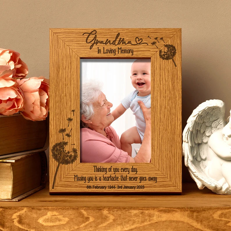 Grandma Remembrance Photo Frame Personalised Portrait With Dandelions