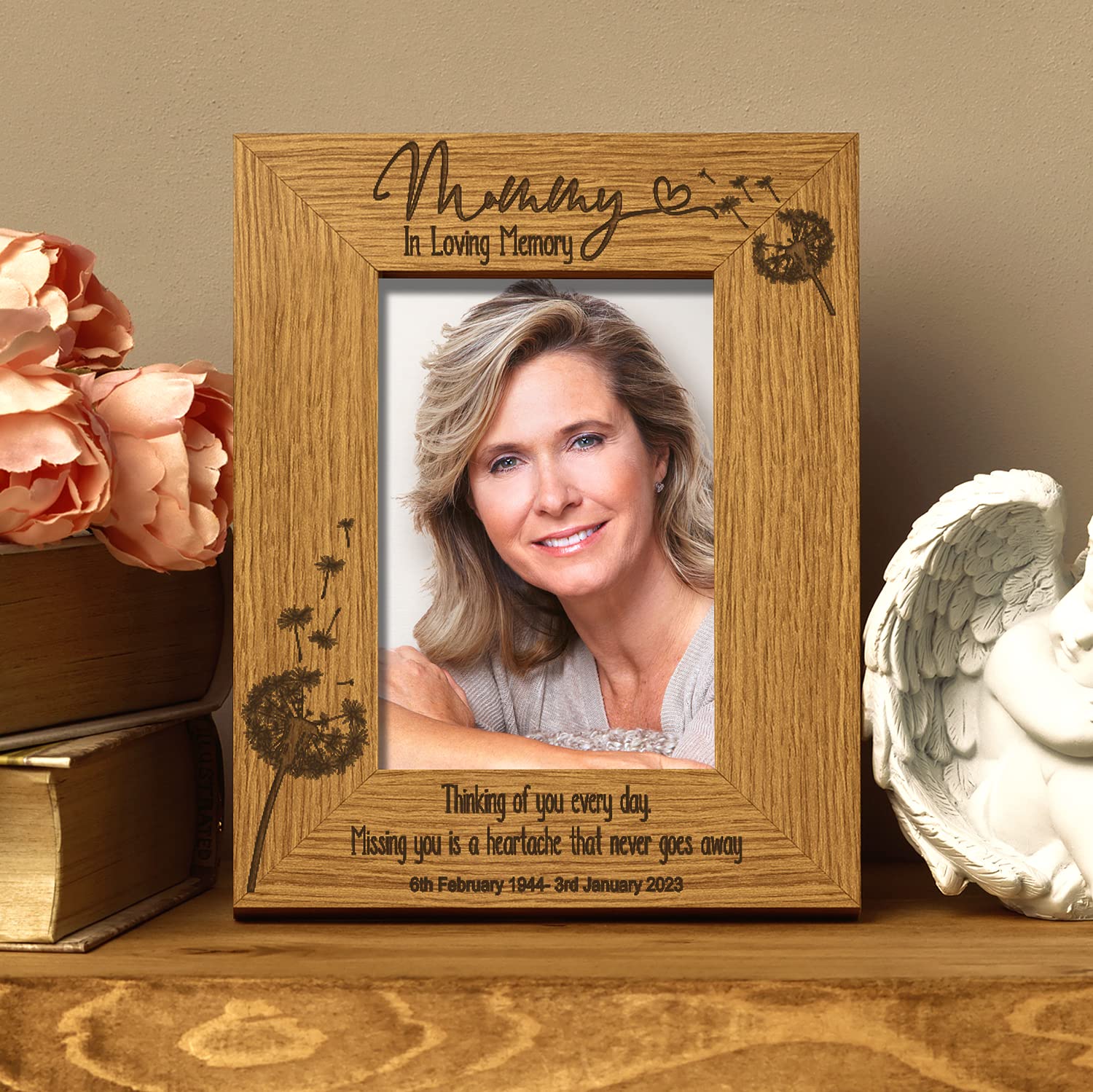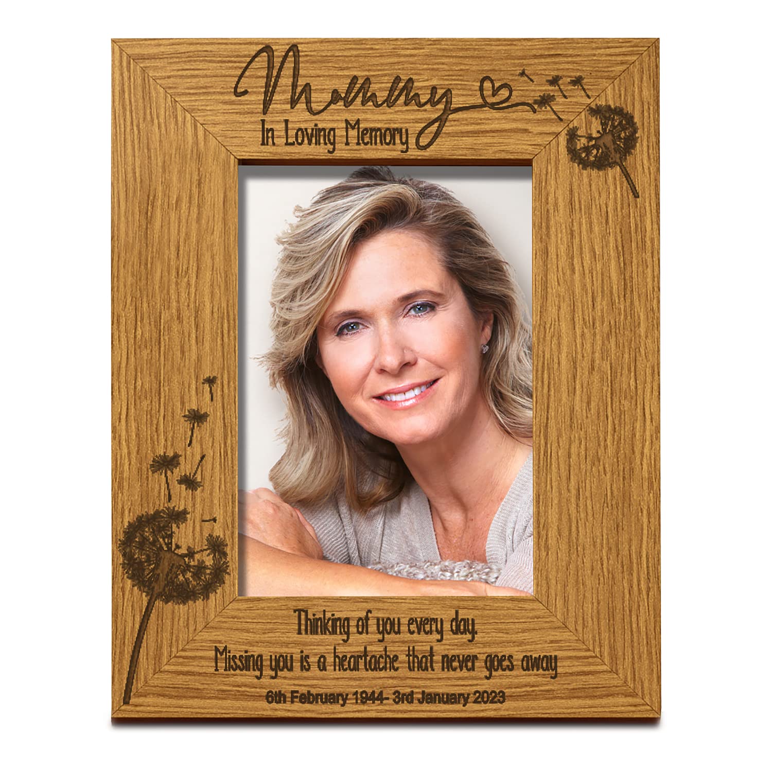 Mummy Remembrance Photo Frame Personalised Portrait With Dandelions