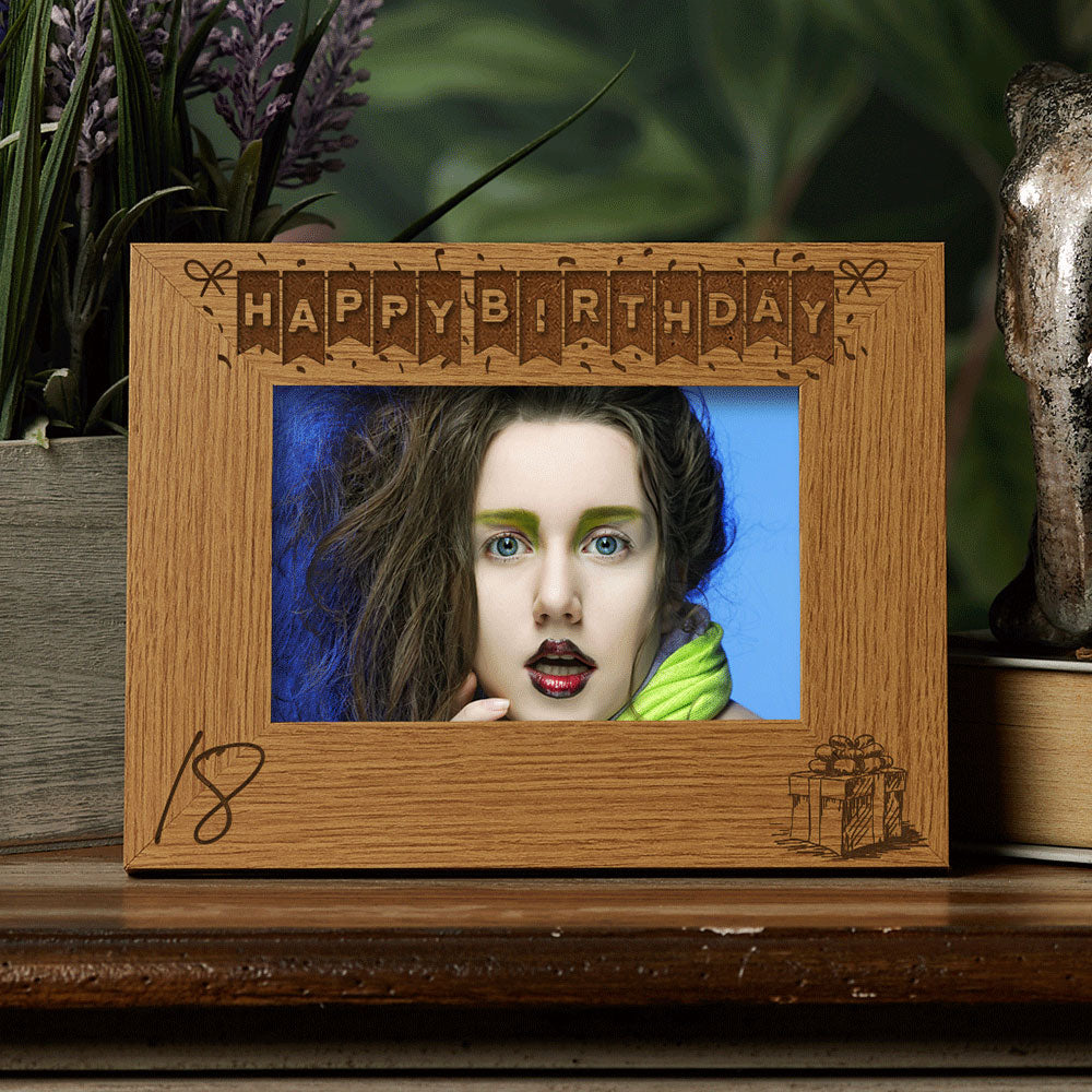 Personalised 18th Birthday Photo Frame Gift with Balloons Landscape A lovely wooden frame to display that all...