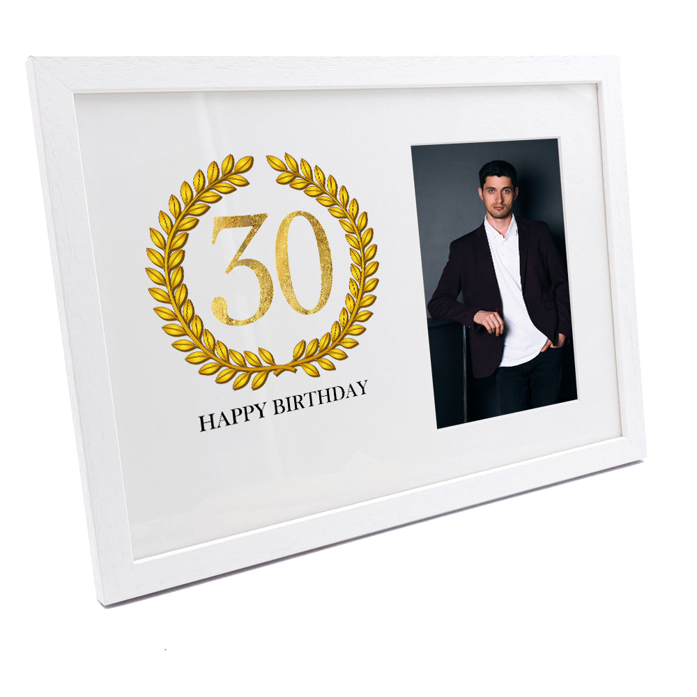 Personalised 30th Birthday Gift for Him Photo Frame Gold Wreath Design