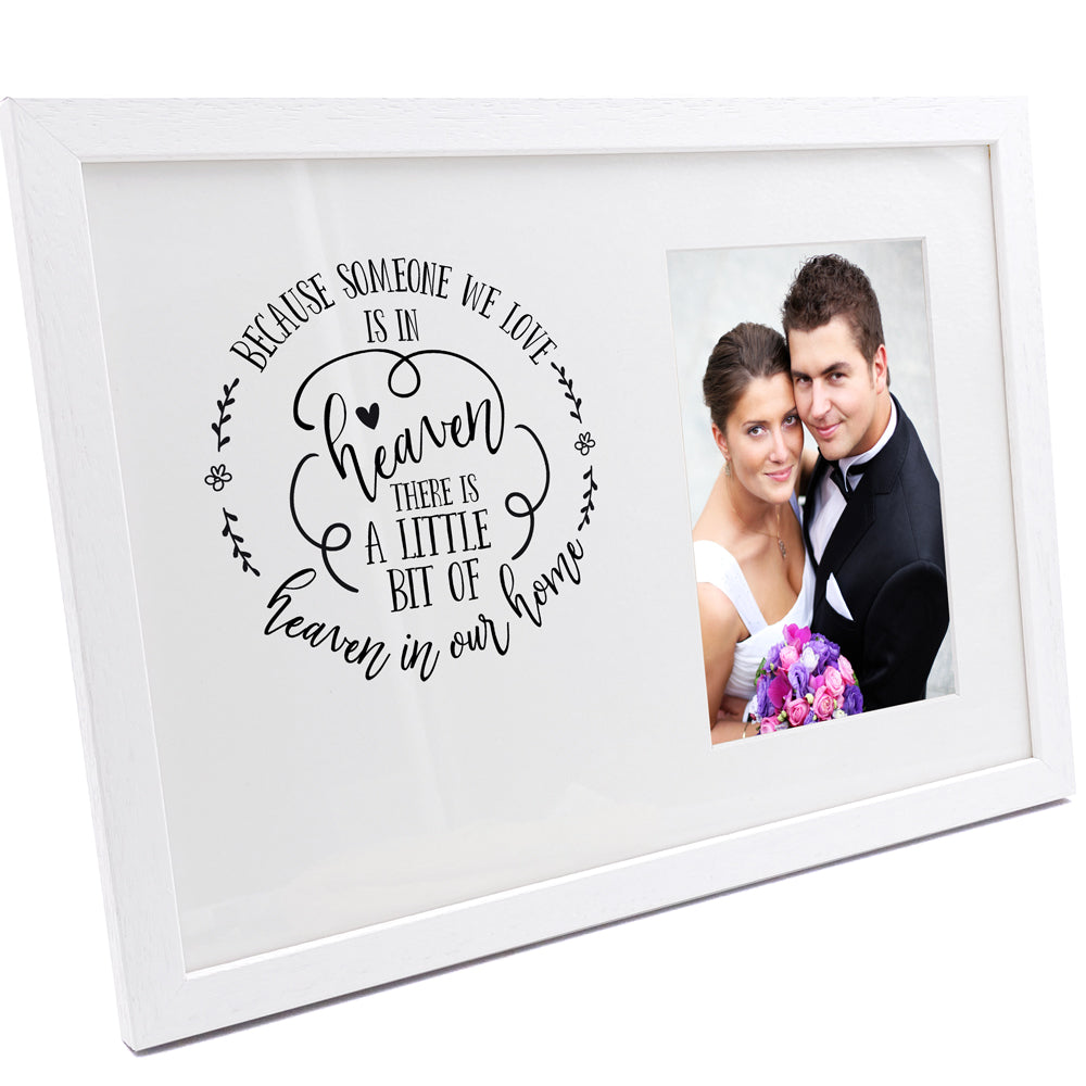 A lovely wooden frame to display that all important or memorable photo. The frame has a white wood finish with the personalised writing on the left and room for a 6" x 4" photo to the right There is a stand at the rear so will sit flat on any surface.