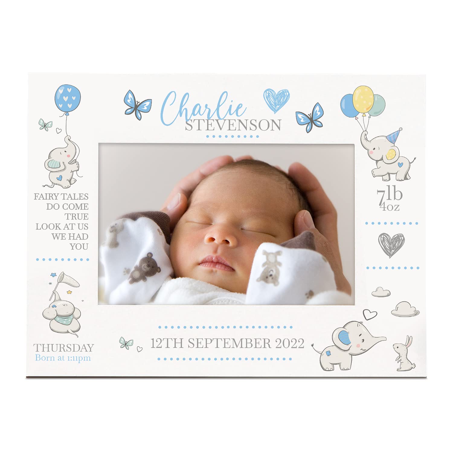 Personalised Baby Boy Photo Frame With Birth Details and Cute Elephant