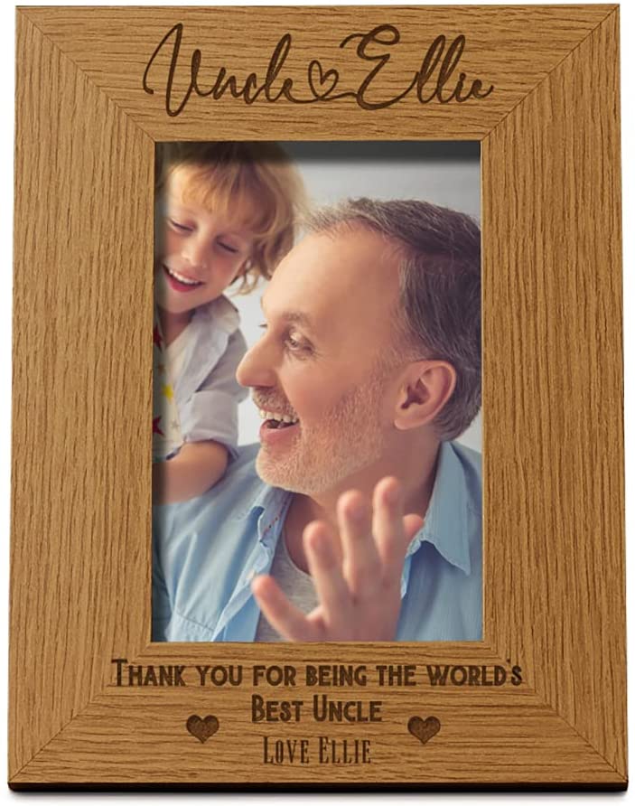 Display your cherished photo with our personalised Uncle Portrait Frame. The frame has a oak wood finish...