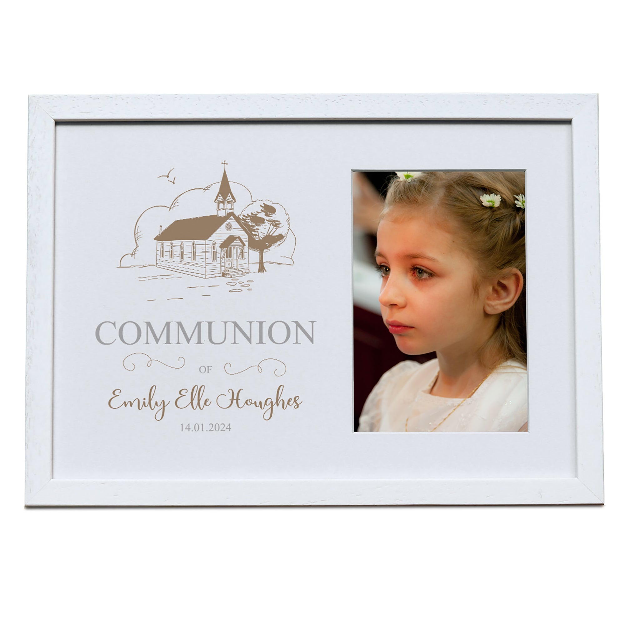 Preserve precious memories with our personalised Communion photo frame. Featuring a stunning church background, this frame is a beautiful way to honour and remember your loved one's special day. Made with high-quality materials, it's sure to last for years to come.