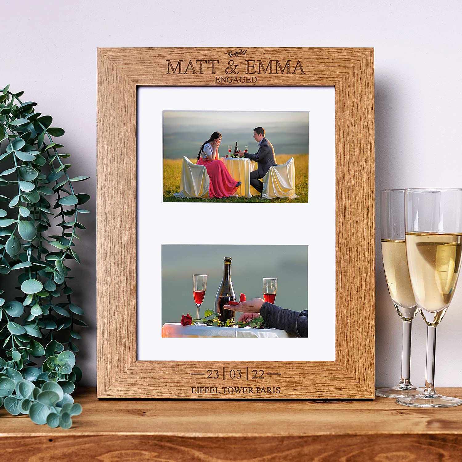 Personalised Engagement Double Photo Picture Frame With Leaf Landscape