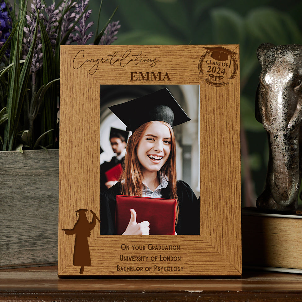 Personalised Female Graduation Wooden Engraved Photo Frame Gift