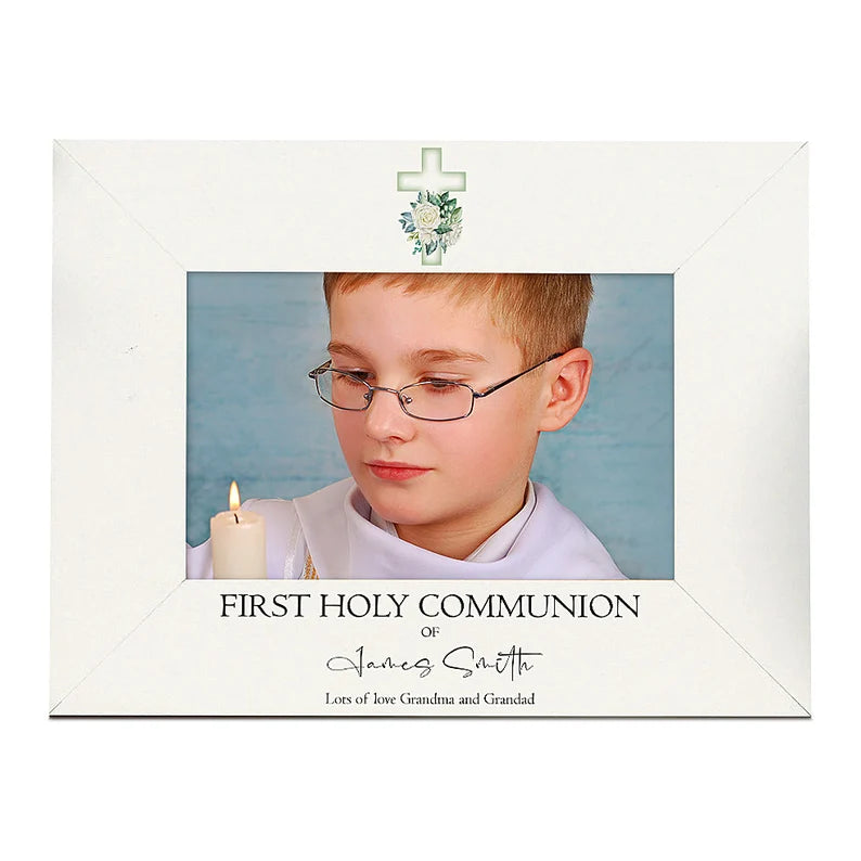 Customizable Communion Photo Frame w/ Green Cross - Perfect way to showcase a special photo! The frame...