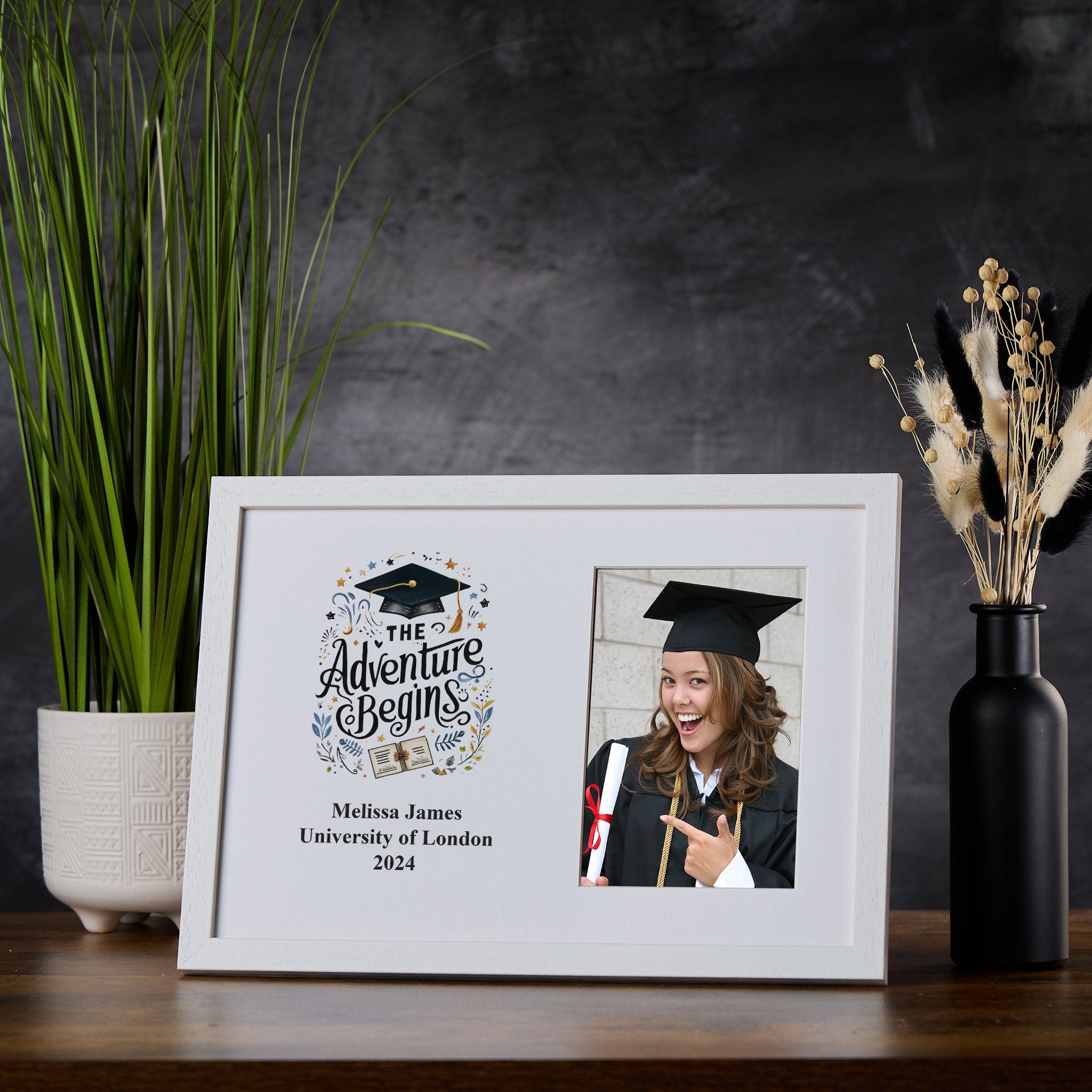 Preserve precious memories with our personalised Graduation photo frame. Featuring personalised details, this frame is a beautiful way to honour and remember your loved one's special day. Made with wood, it's sure to last for years to come.