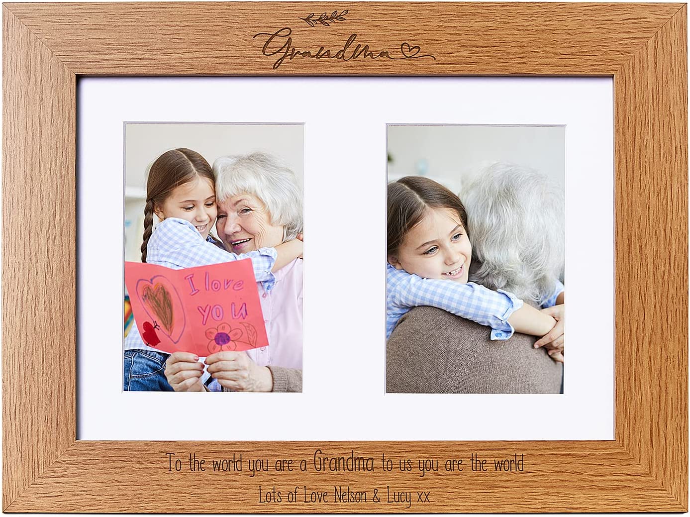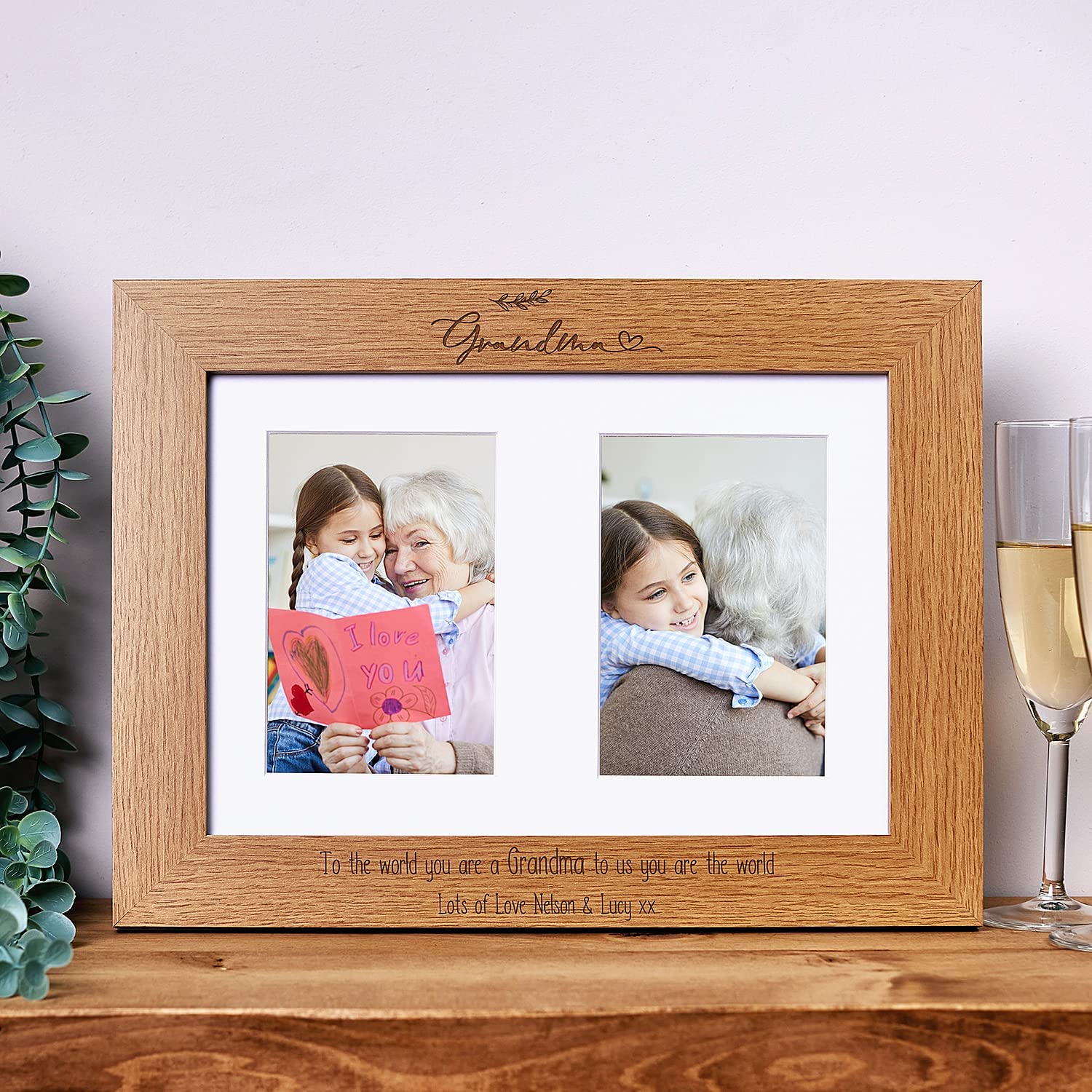 Personalised Grandma Wooden Double Photo Frame Gift Portrait