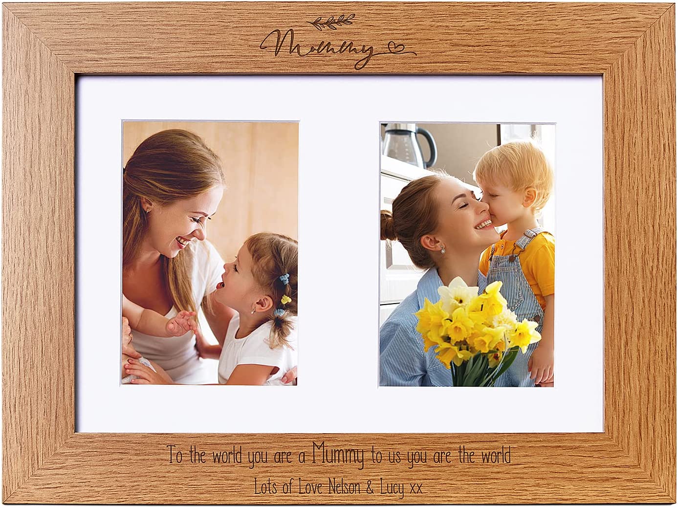 Personalised Mummy Wooden Double Photo Frame Gift Portrait A lovely wooden frame to display those all important or memorable photos.