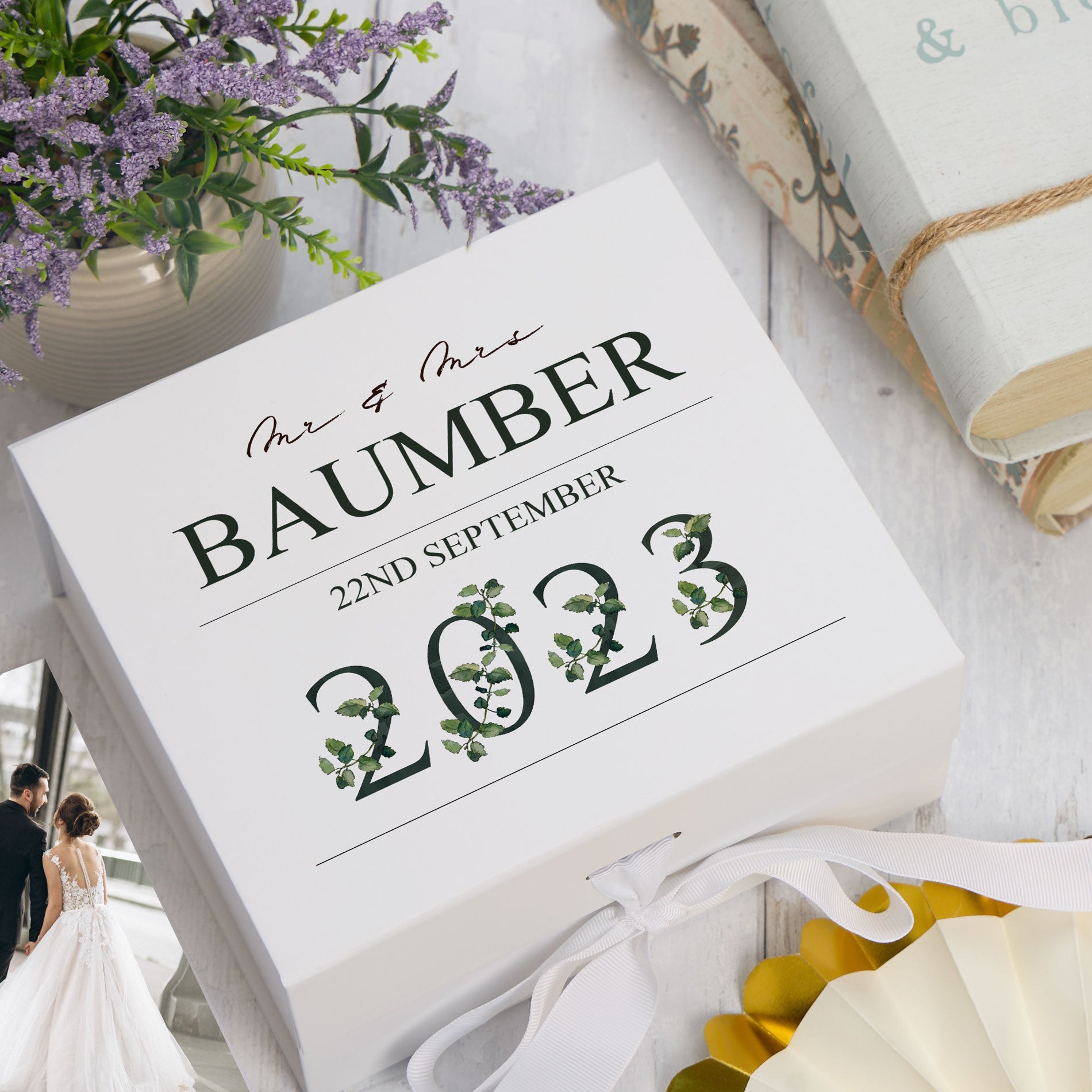 The personalised print on this luxury box is raised slightly to create a stunning embossed-style feature. The box itself is sturdy and durable - made from a luxurious 1200gsm white matt laminated rigid board. Available in two sizes and used as a gift box, as a memory box or as part of a hamper. Medium 17cm x 17cm x 8cm Large 30cm x 30cm x 9cm It can be used as a gift box, as a memory box or as part of a hamper.
