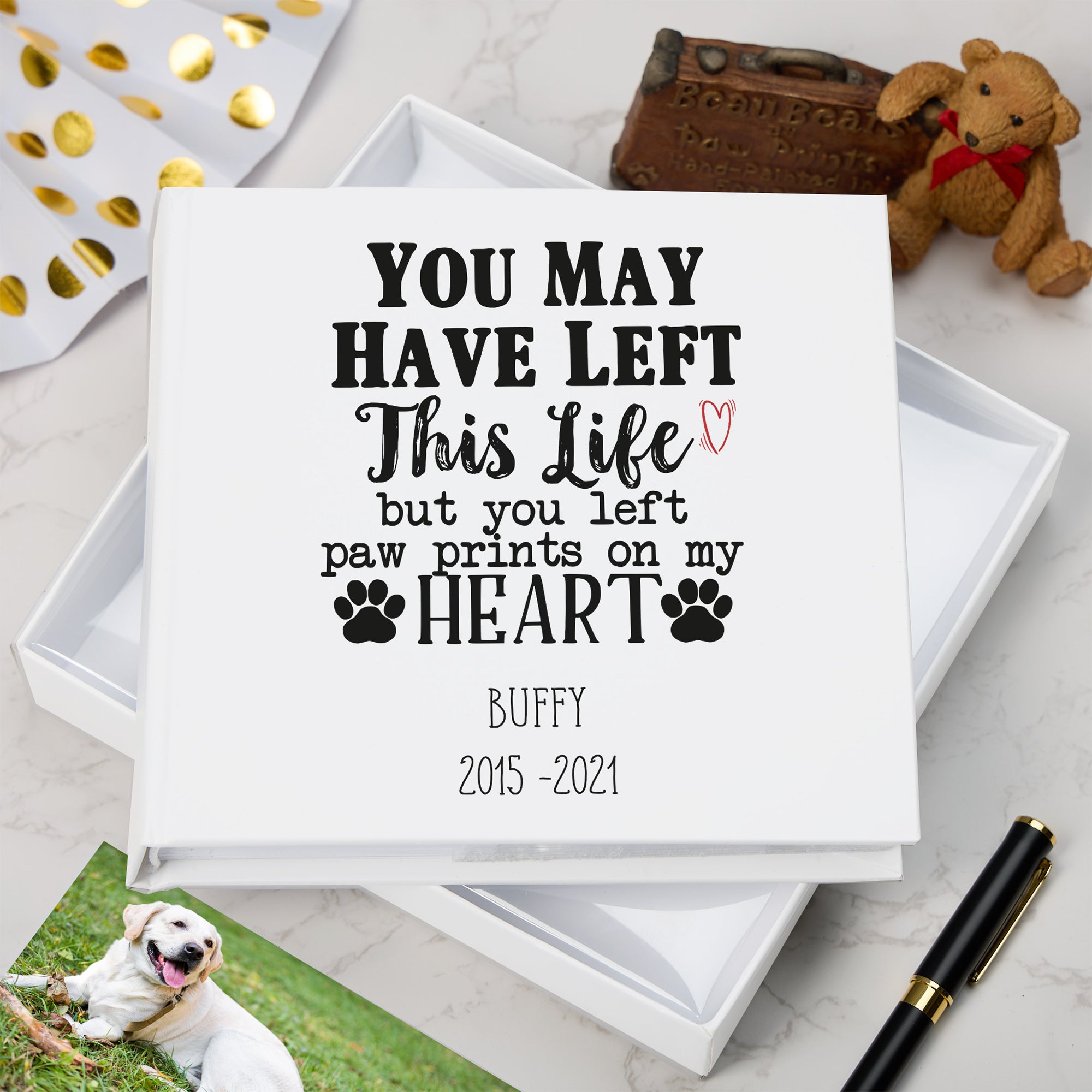 The Personalised You Left Paw Prints On My Heart Photo Album offers a meaningful way to commemorate...