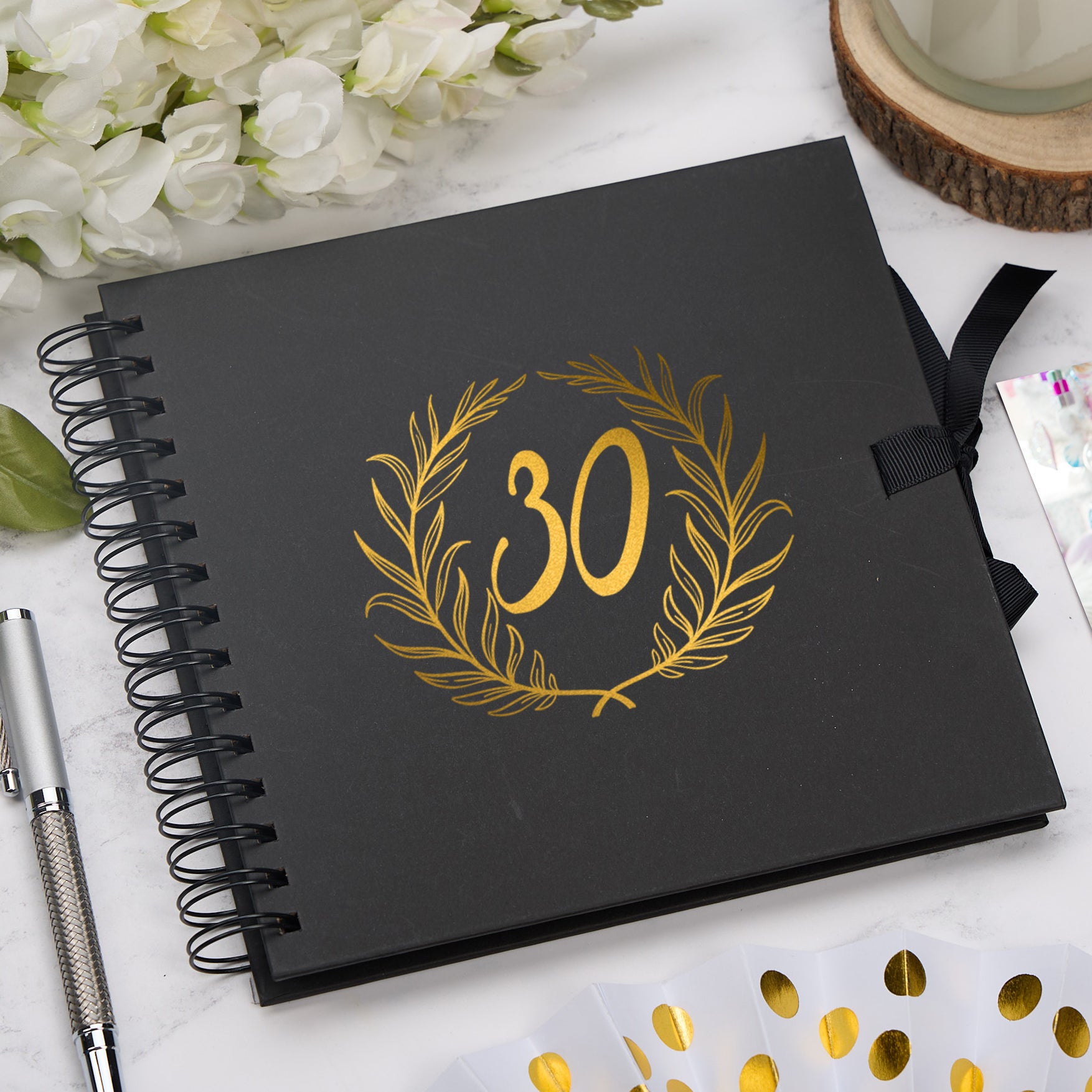 30th Birthday Black Scrapbook Photo album With Gold Script Laurel Wreath