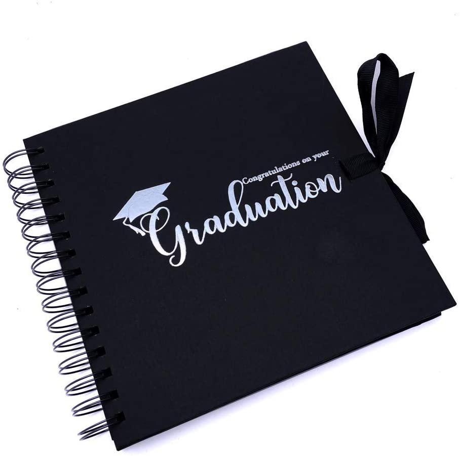 Graduation Black Scrapbook, Guest Book Or Photo Album with Silver Script