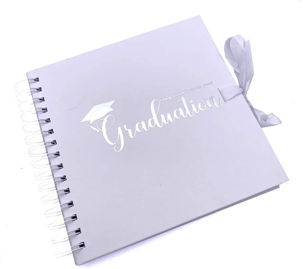 Graduation White Scrapbook, Guest Book Or Photo Album with Silver Script