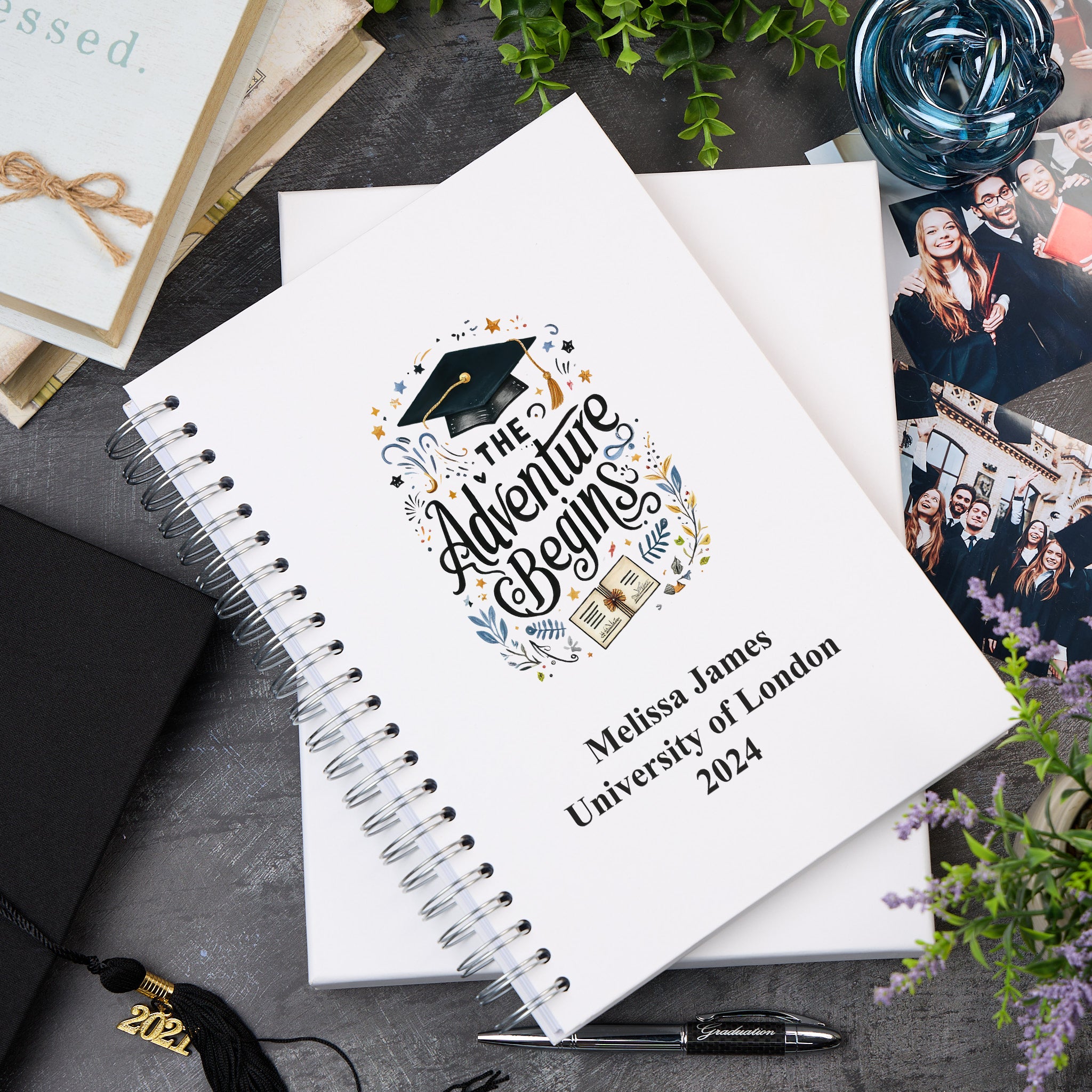 Customised book keepsakes designed exclusively for the graduate. Can be used as a scrapbook, or photo album, offering versatile functionality