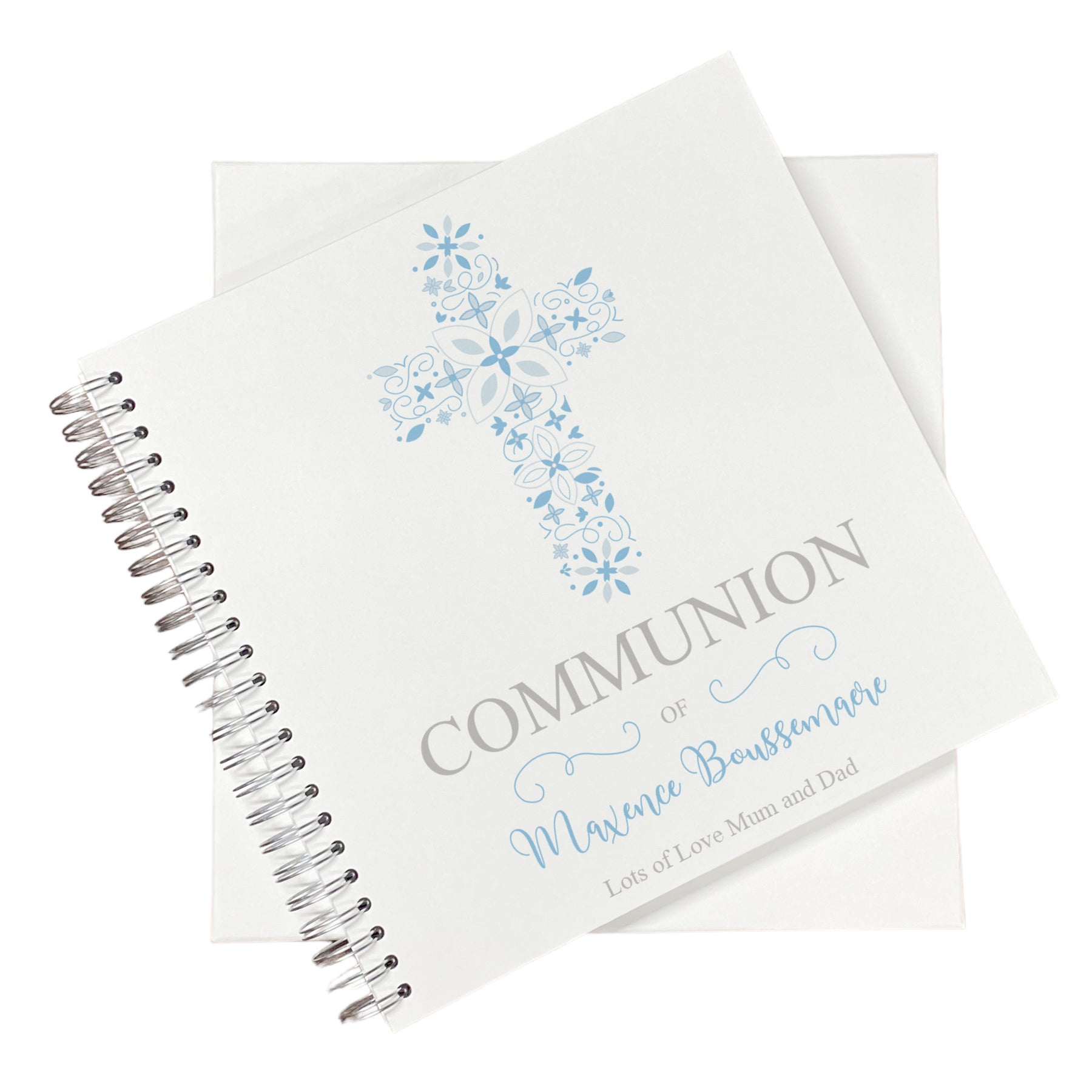 This photo album scrapbook guest book is perfect for keeping your memories of your child's First Holy Communion. It comes boxed with a beautiful blue cross, making it a thoughtful and meaningful gift. The album can hold multiple photos and mementos, ensuring that you can treasure each special moment for years to come. Preserve your child's precious memories in style with this high-quality product.