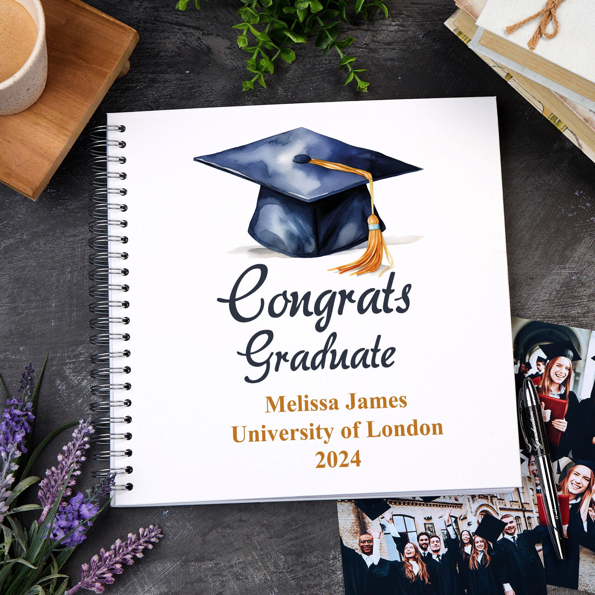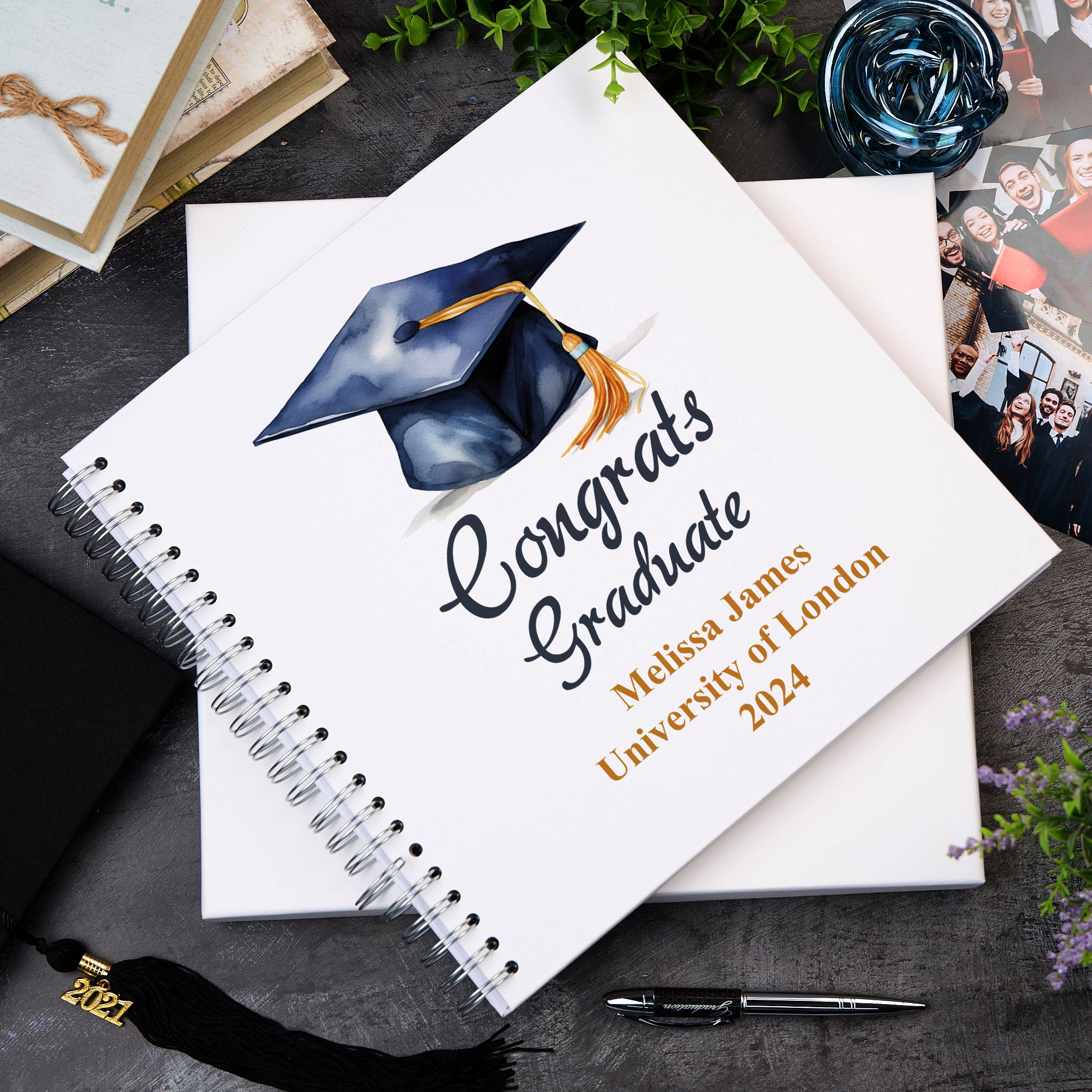 Large Graduation Photo Album Scrapbook Boxed Gift With Watercolour Hat