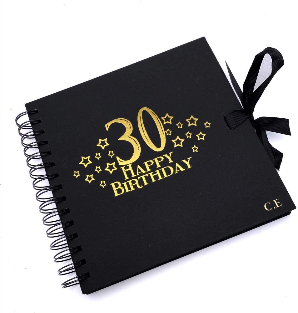 Personalised 30th Birthday Black Scrapbook, Guest Book Or Photo Album with Gold Script