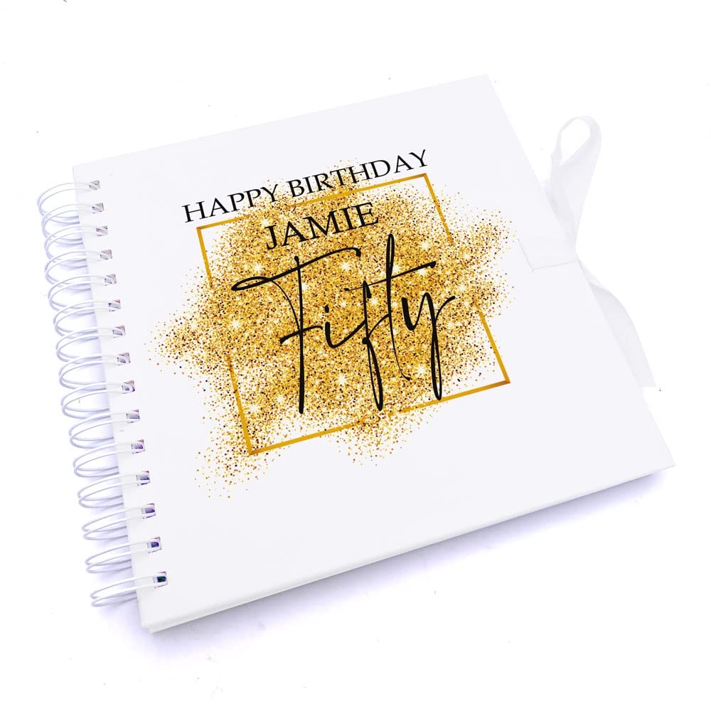 Personalised 50th Birthday Gift Scrapbook or Photo Album Gold Sparkles