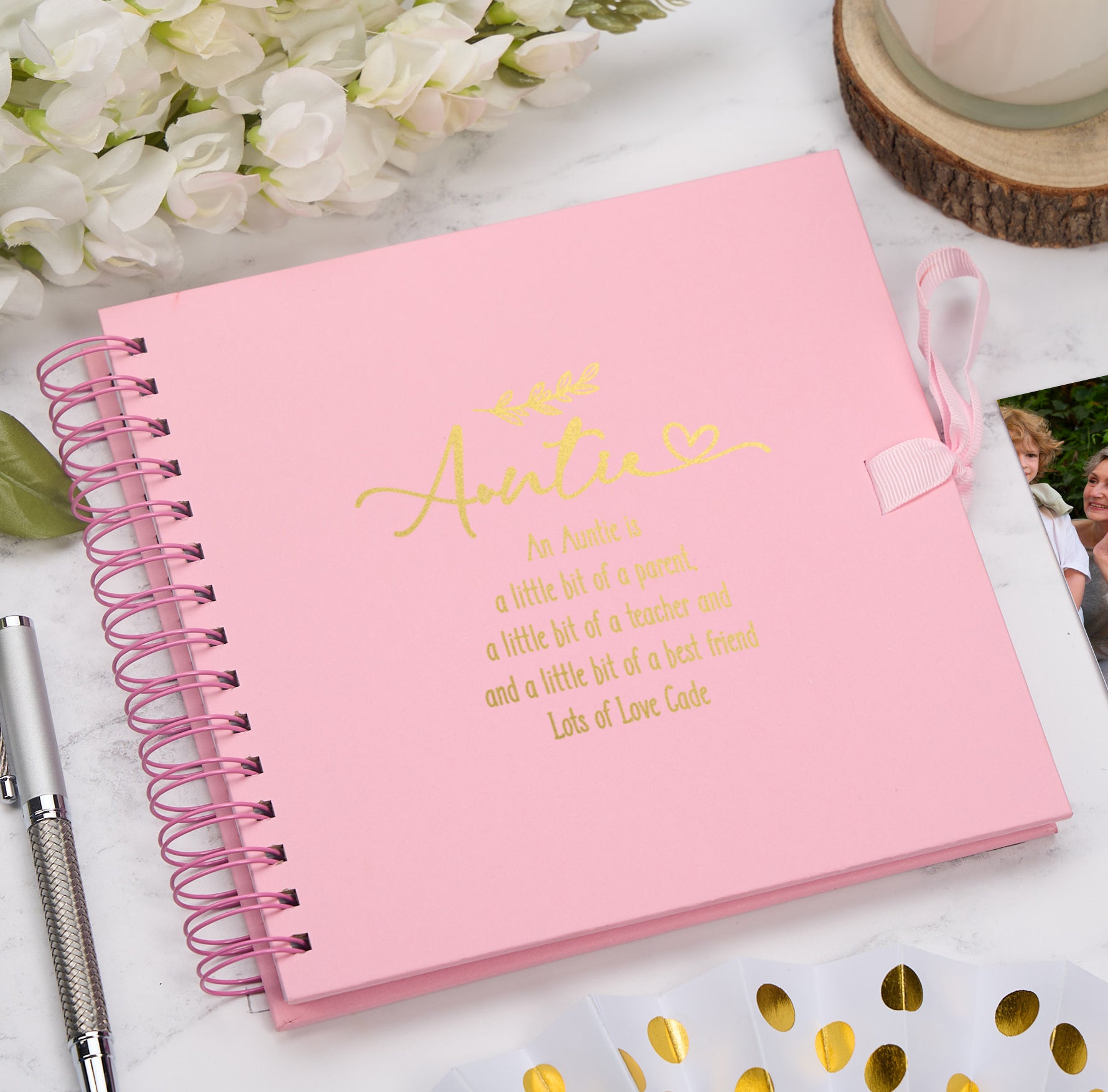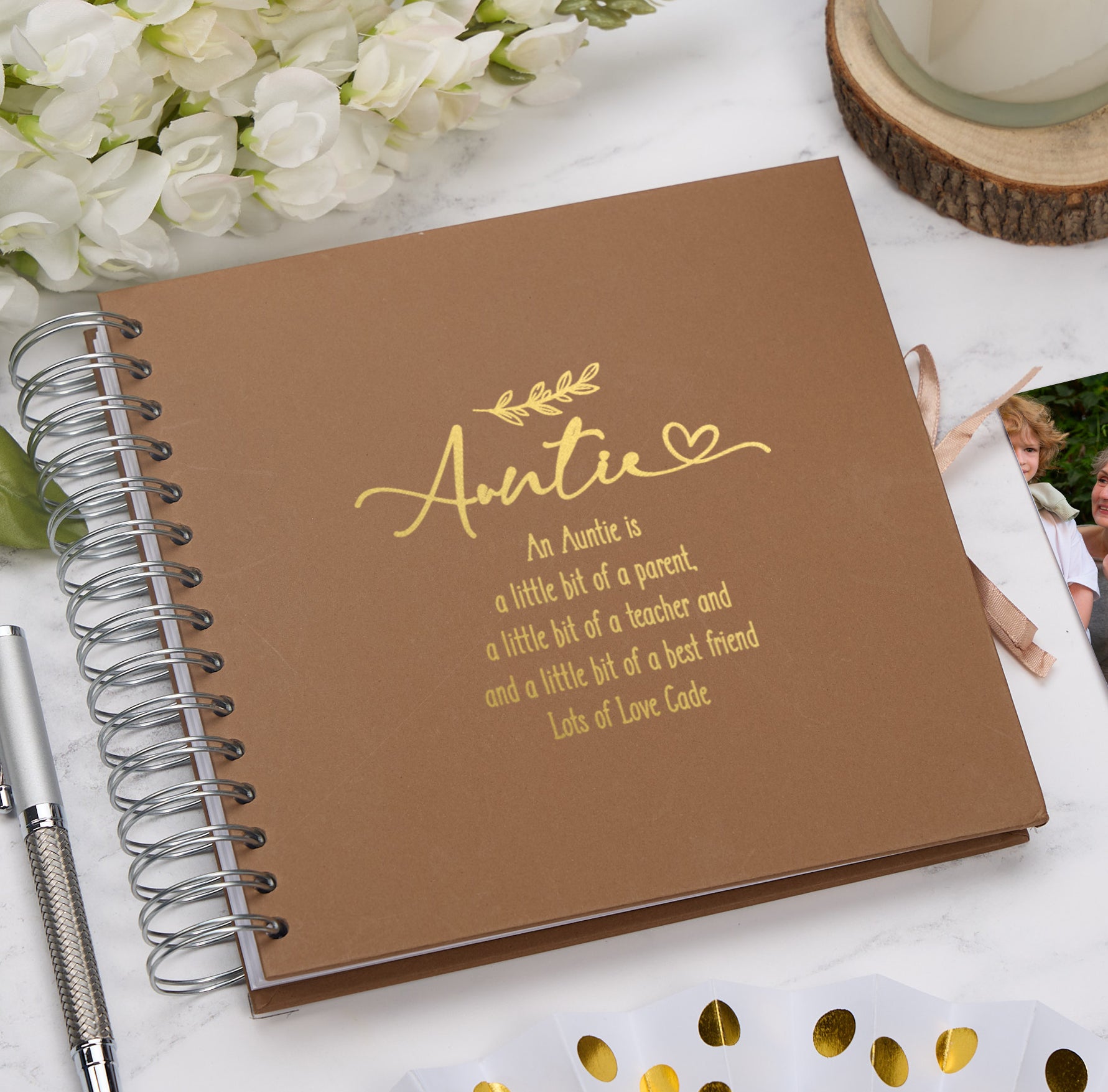 For the personalisation please choose the colour of the scrapbook, state the foil colour, then we require the bottom line, everything else remains the same.