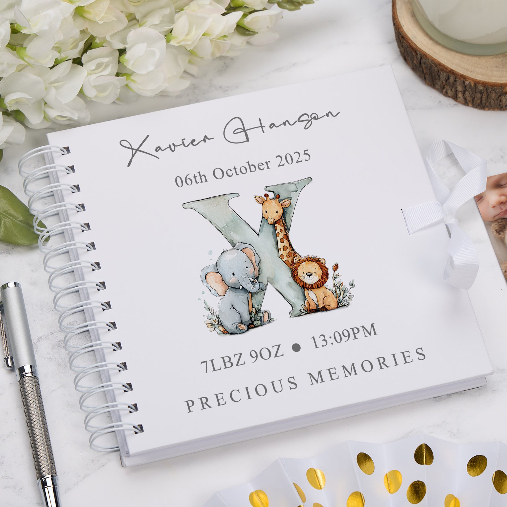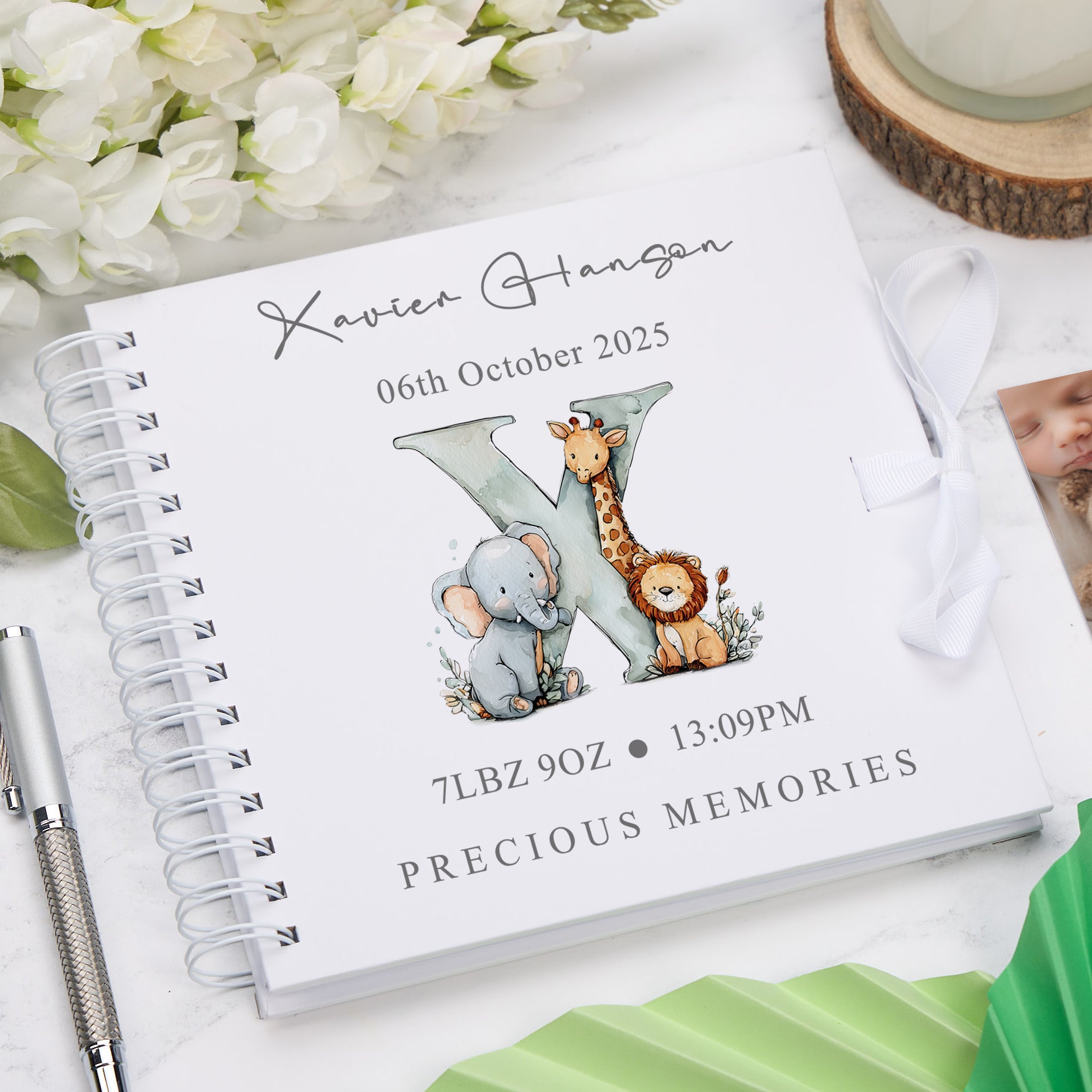 Personalised Baby Scrapbook Safari Animals Alphabet Design Memory Book Special Keepsake Album With Birth Details