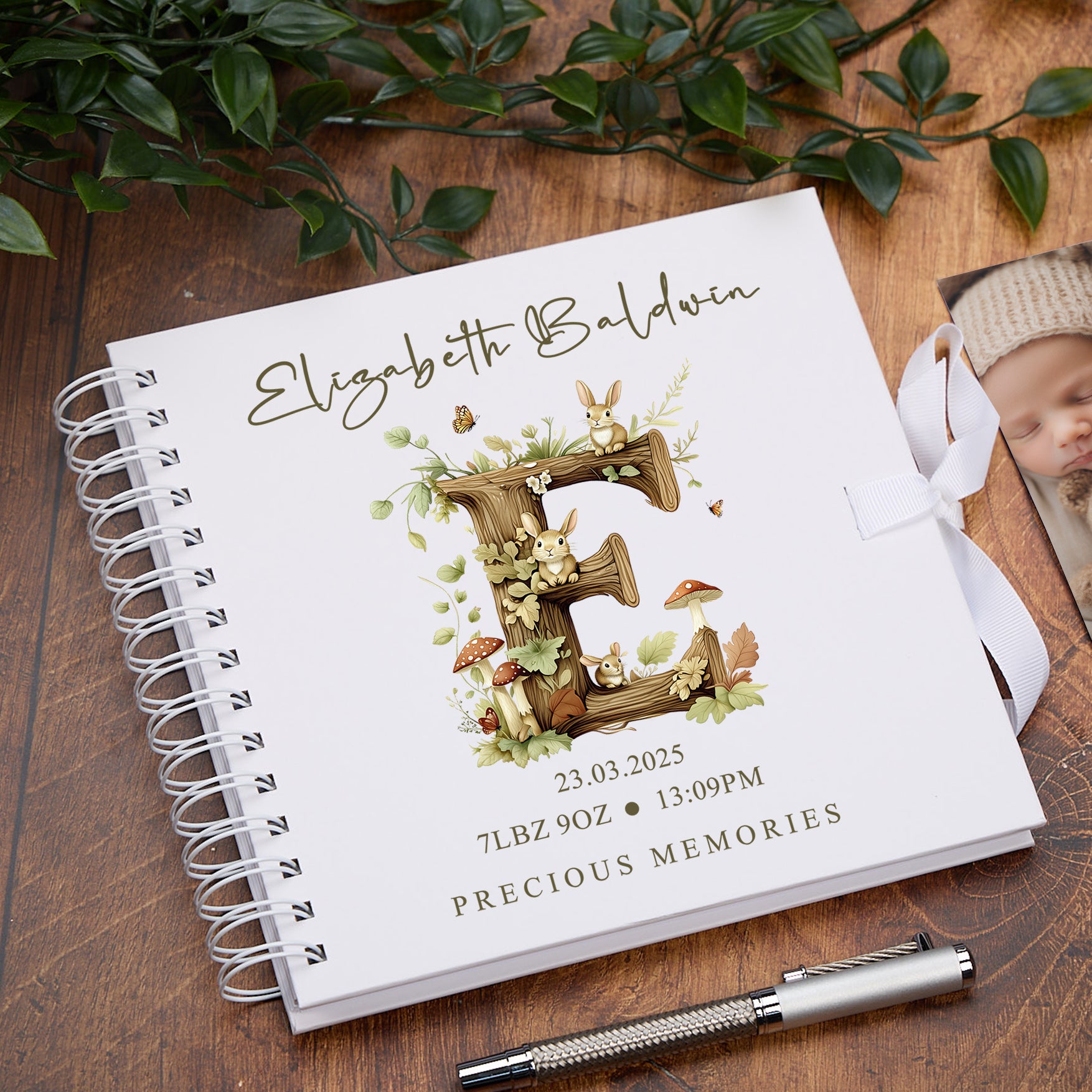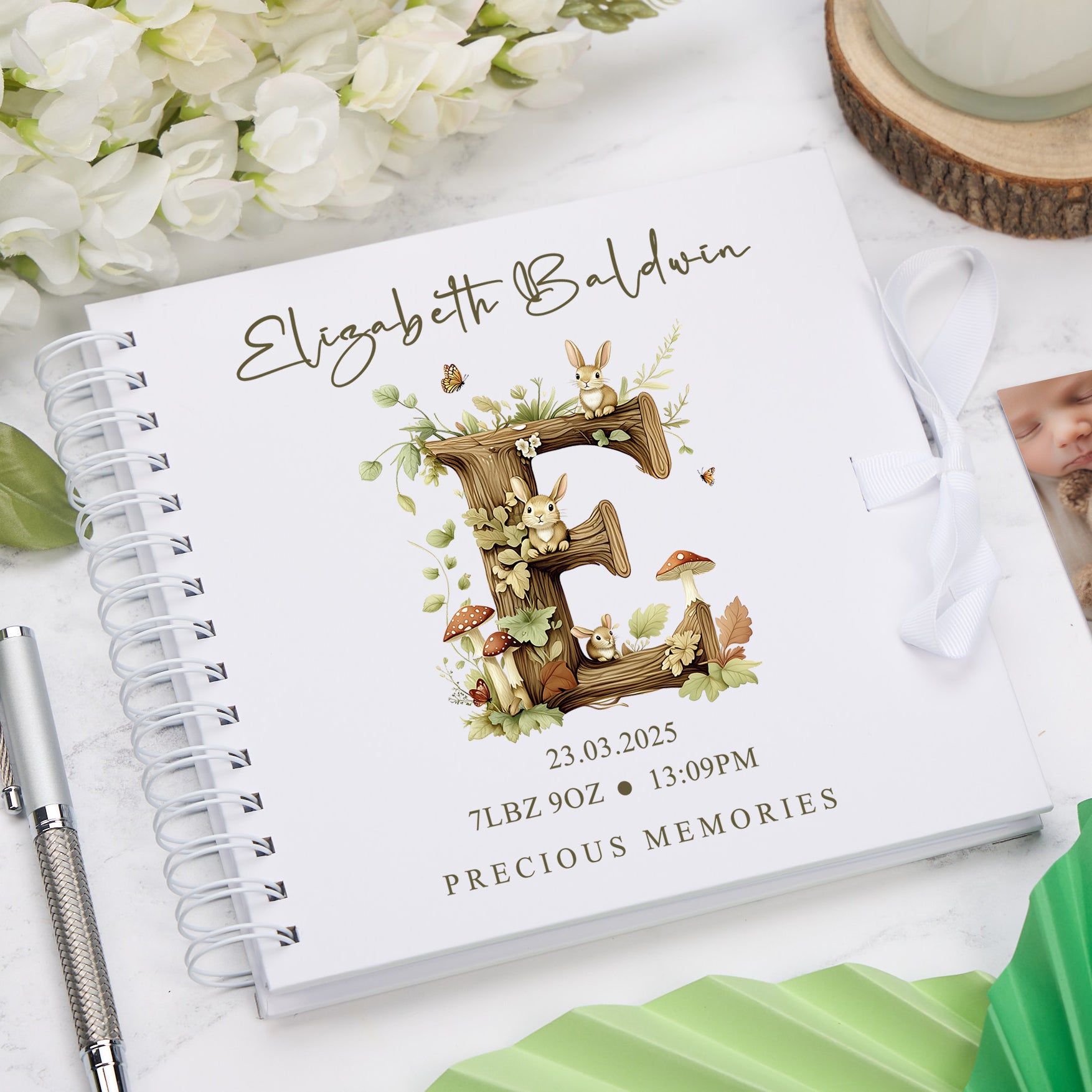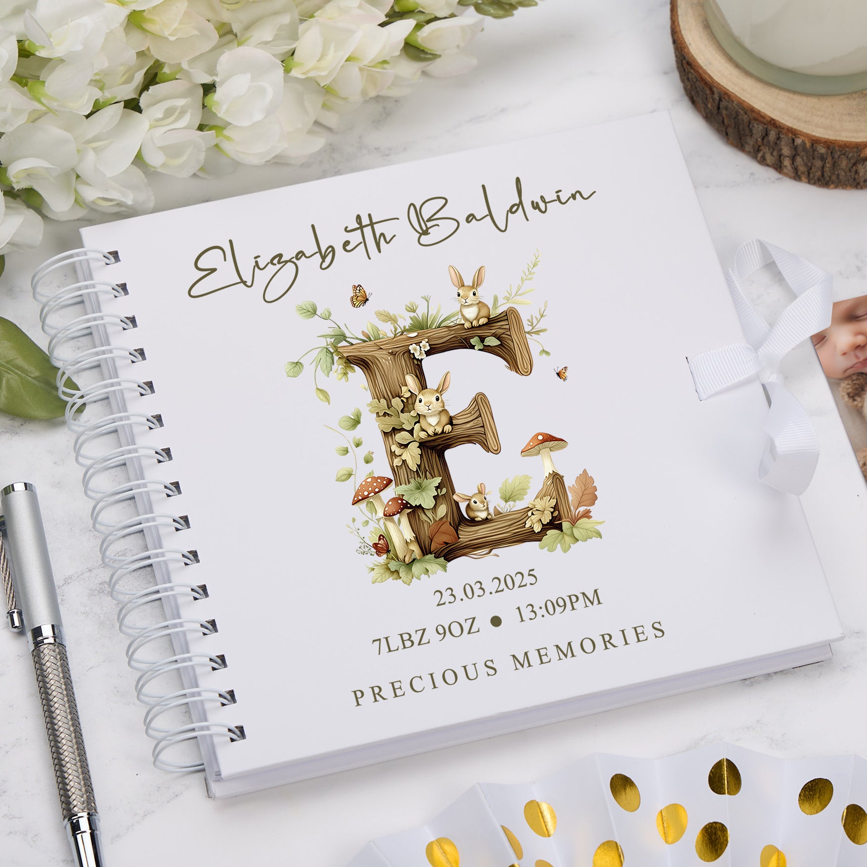This personalised baby scrapbook features a charming woodland alphabet design, making it an ideal keepsake for capturing your baby's earliest memories. The memory book includes dedicated pages to record important birth details alongside special milestones and photographs. Crafted to preserve treasured moments, this album offers a beautiful way to celebrate your child's beginnings and create a lasting family heirloom. Its thoughtful design provides both style and function, making it a meaningful gift for new parents or a treasured addition to your own nursery collection.