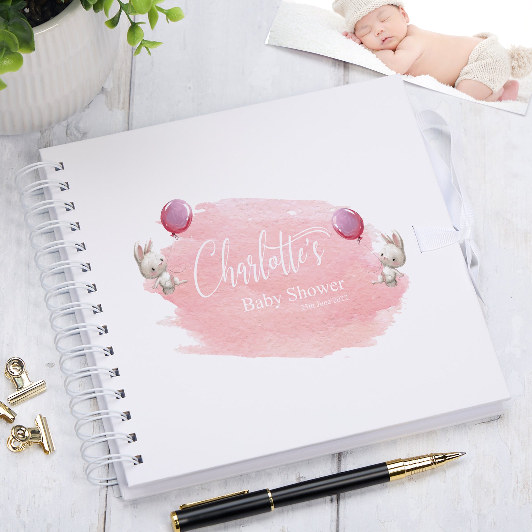 Personalised Baby Shower Rabbit Design Scrapbook Photo Album Guest Book