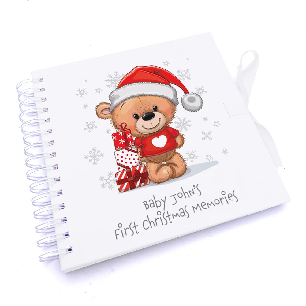 Personalised Baby's First Christmas Scrapbook Photo Album With Teddy