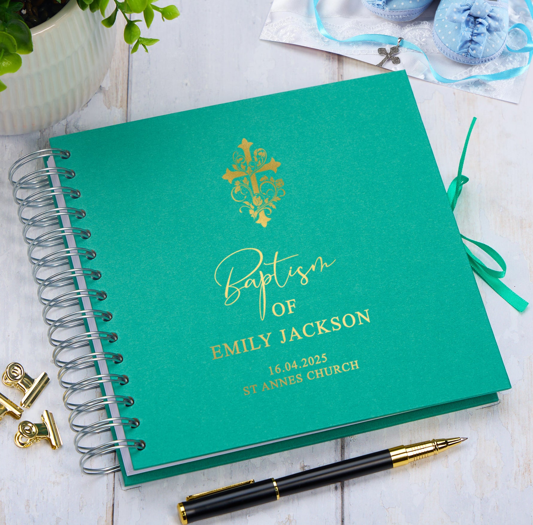 Personalised Baptism Guestbook, Photo Album or Scrapbook With Cross and Multiple Colours