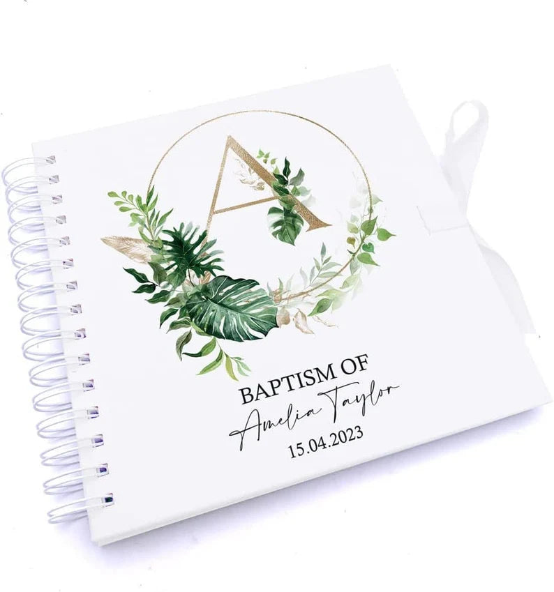 Personalised Baptism Guestbook Scrapbook Photo Album Tropical Leaves