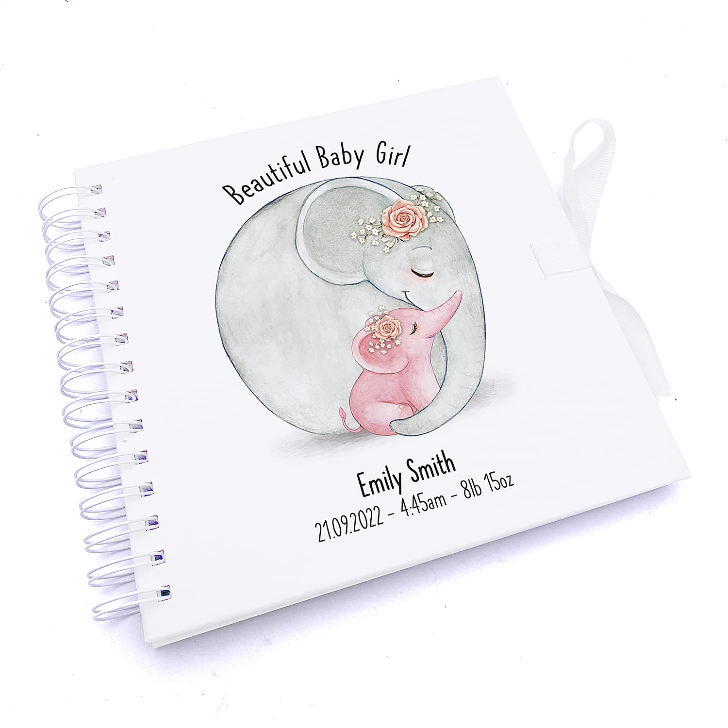 Personalised Beautiful Baby Girl Memory Scrapbook Album With Elephants
