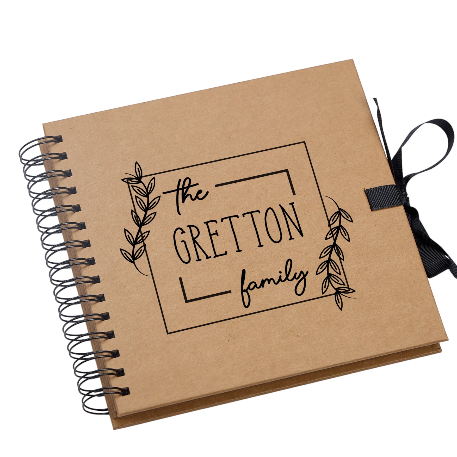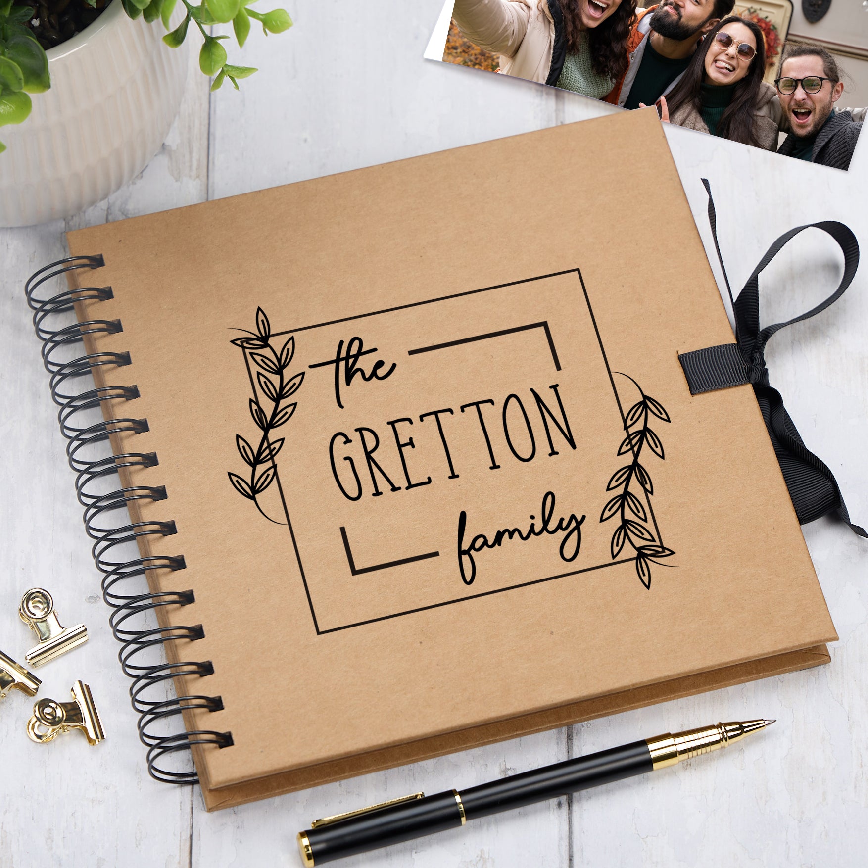 Personalised Family Name Leaf Design Brown Scrapbook Photo Album Transform blank pages into a cherished keepsake by adding various papers, embellishments, and cardstock to showcase photos, cards, and memorabilia. Easily stamp dates and add notes, or create fold-out sections and pockets for extra detail. The spiral binding accommodates thick pages, allowing for layered, dimensional designs. Crafted with high-quality, durable, and absorbent paper, this scrapbook supports glues, paints, tapes, and decorations. Perfect for preserving treasured memories, it can be personalised as a thoughtful gift or a personal project. Size: 20.3 x 20.3 cm (8 x 8 inches), 80 pages, kraft design, ideal for photos, letters and memorabilia.