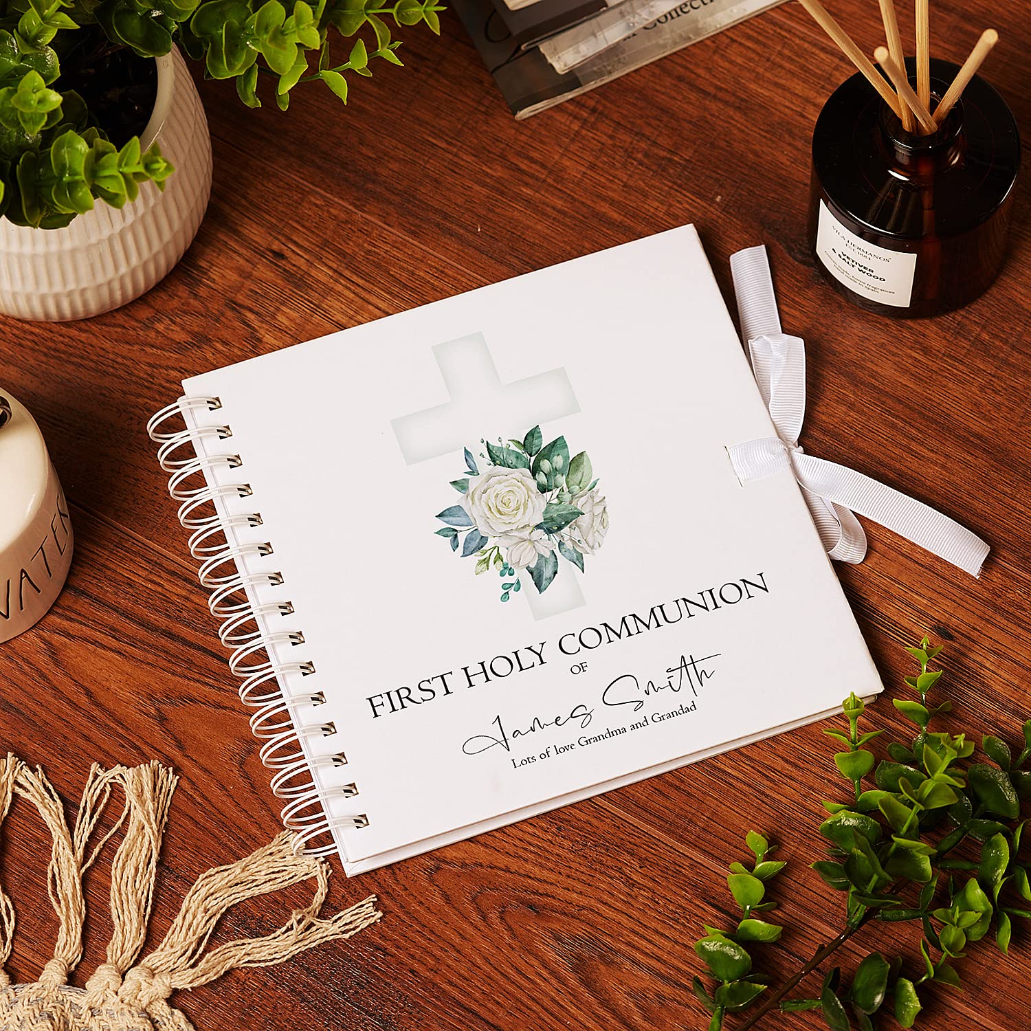 Personalised First Holy Communion Green Cross Guestbook Scrapbook Photo Album