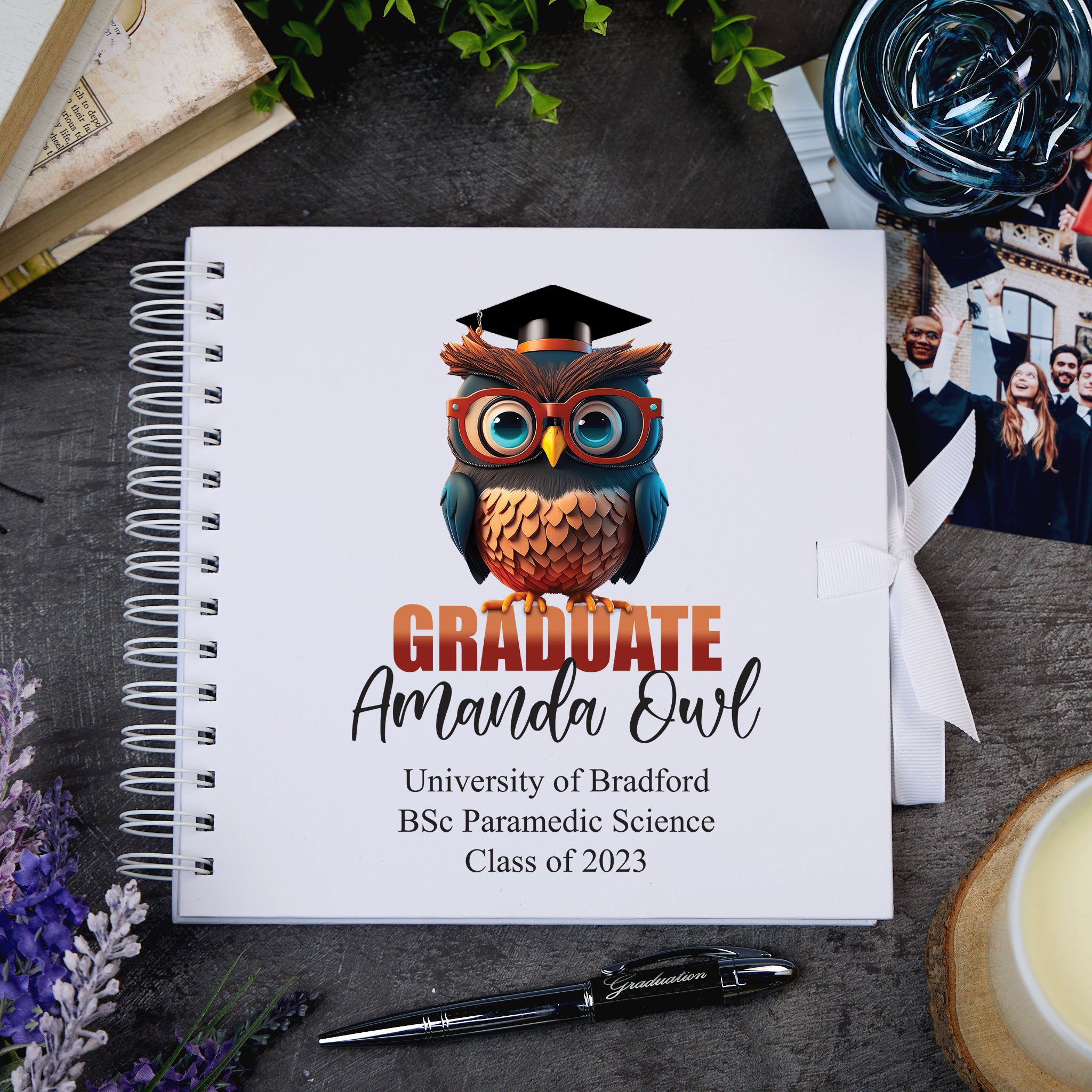 Personalised Graduation Guestbook Scrapbook Album Keepsake With Owl