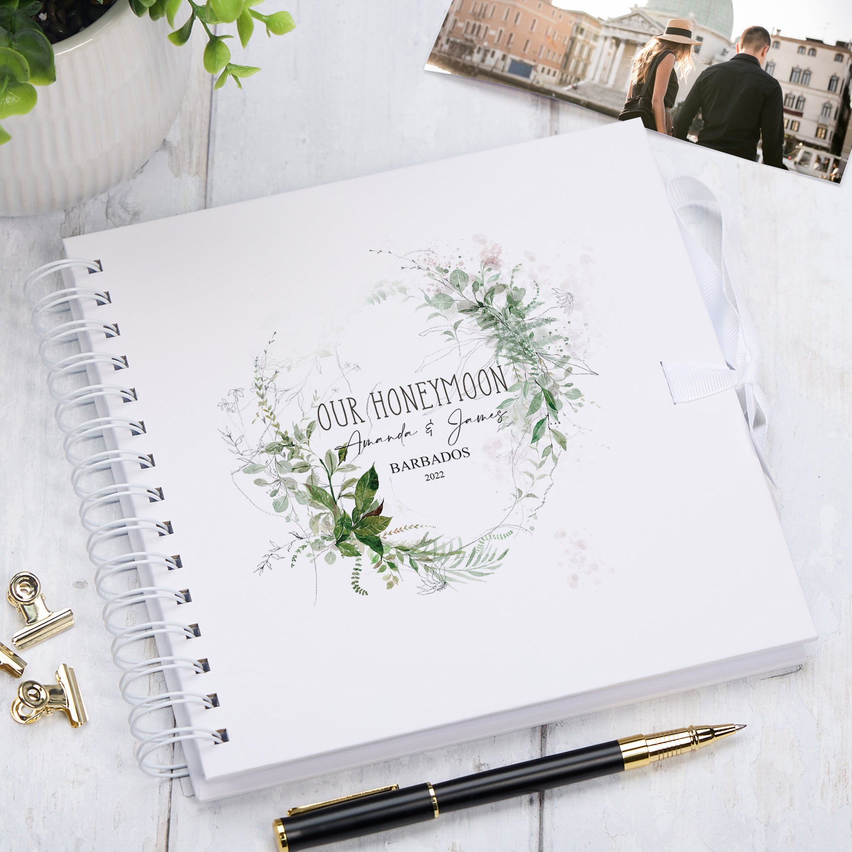 We personalise the names, destination & date.