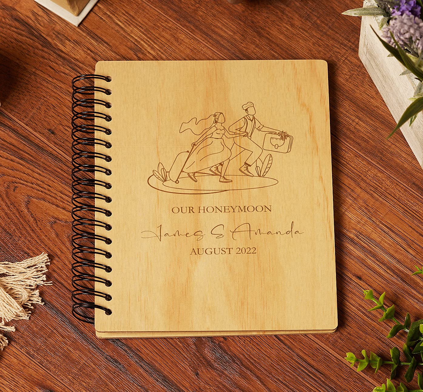Personalised Honeymoon Wooden Photo Album Engraved With Couple