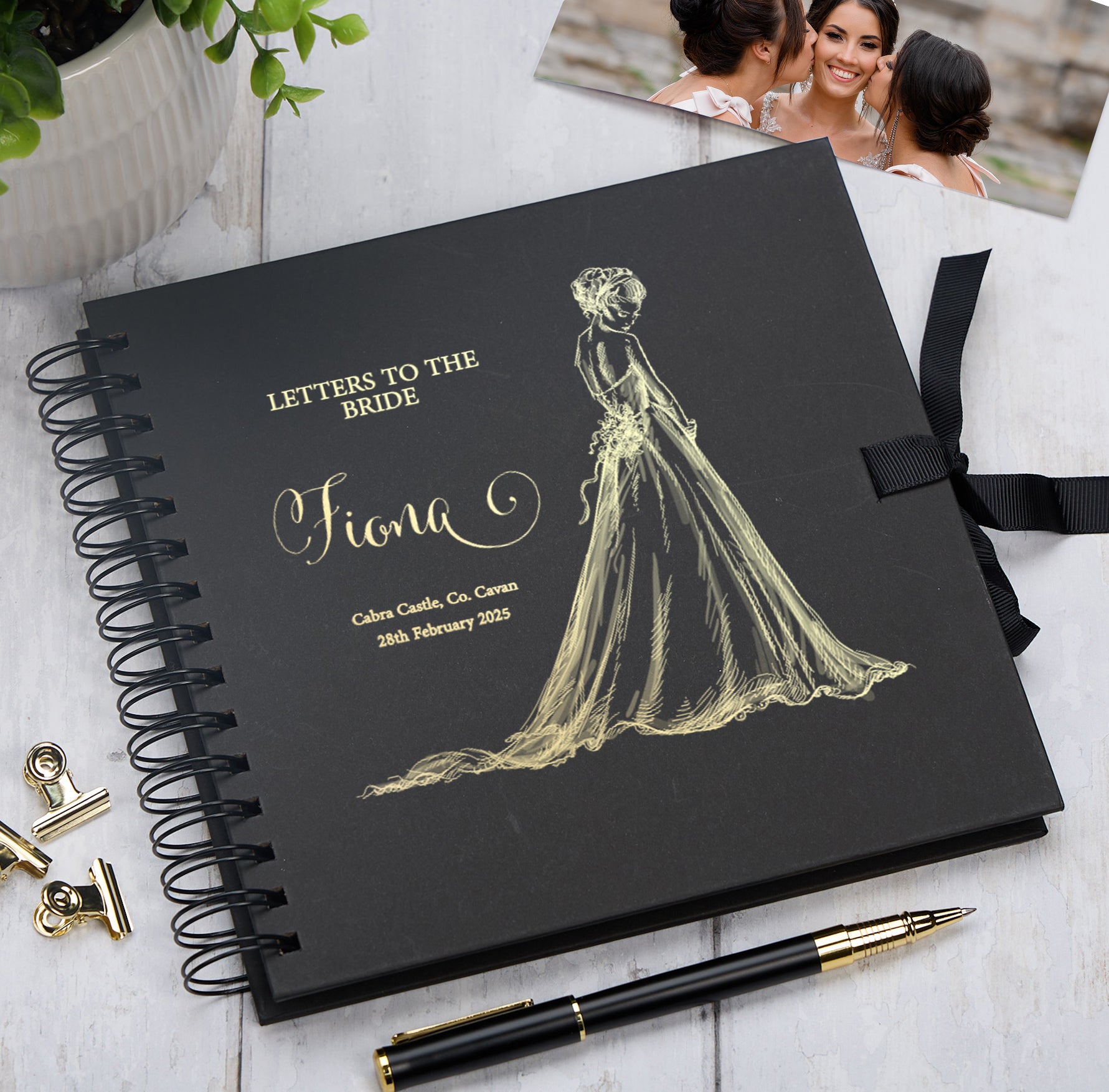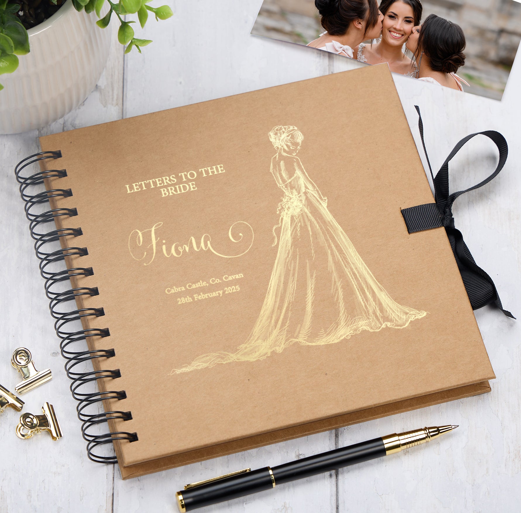 For personalisation please choose the colour of the scrapbook, state the foil colour, then we require the name, date and destination.
