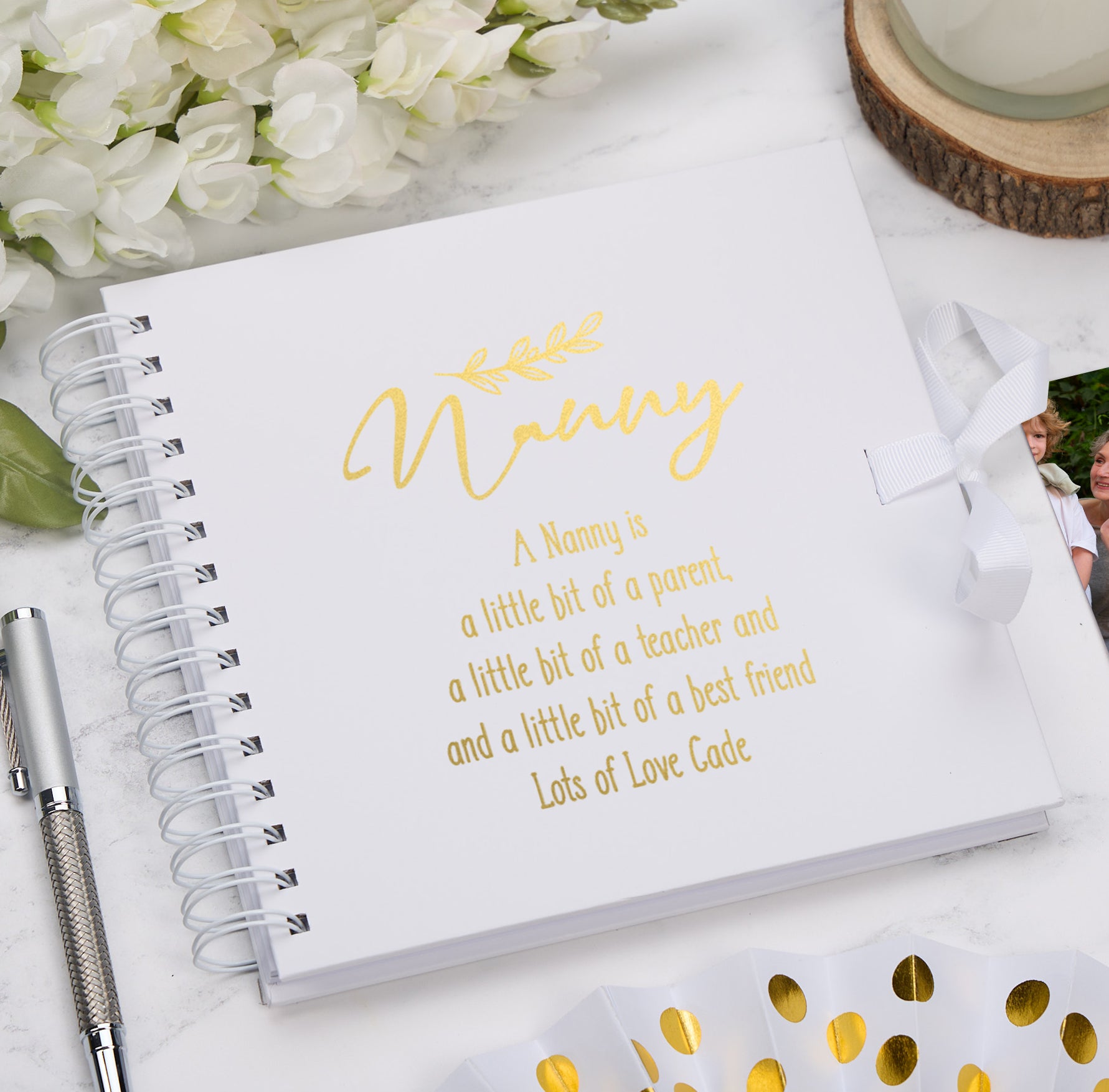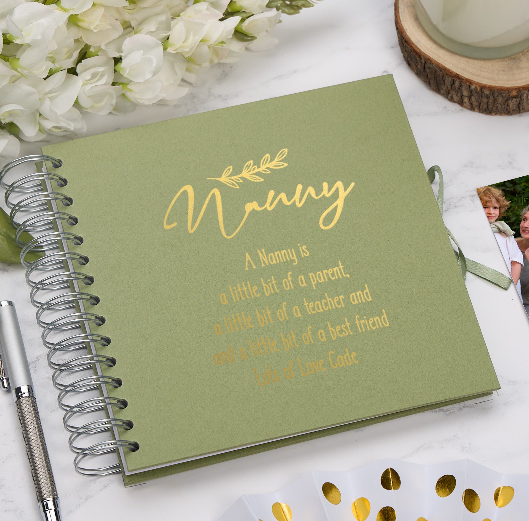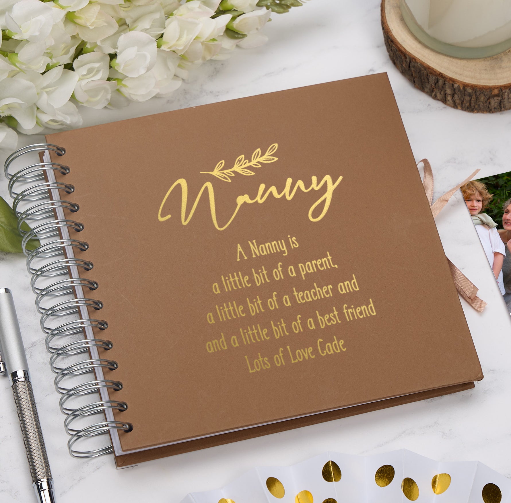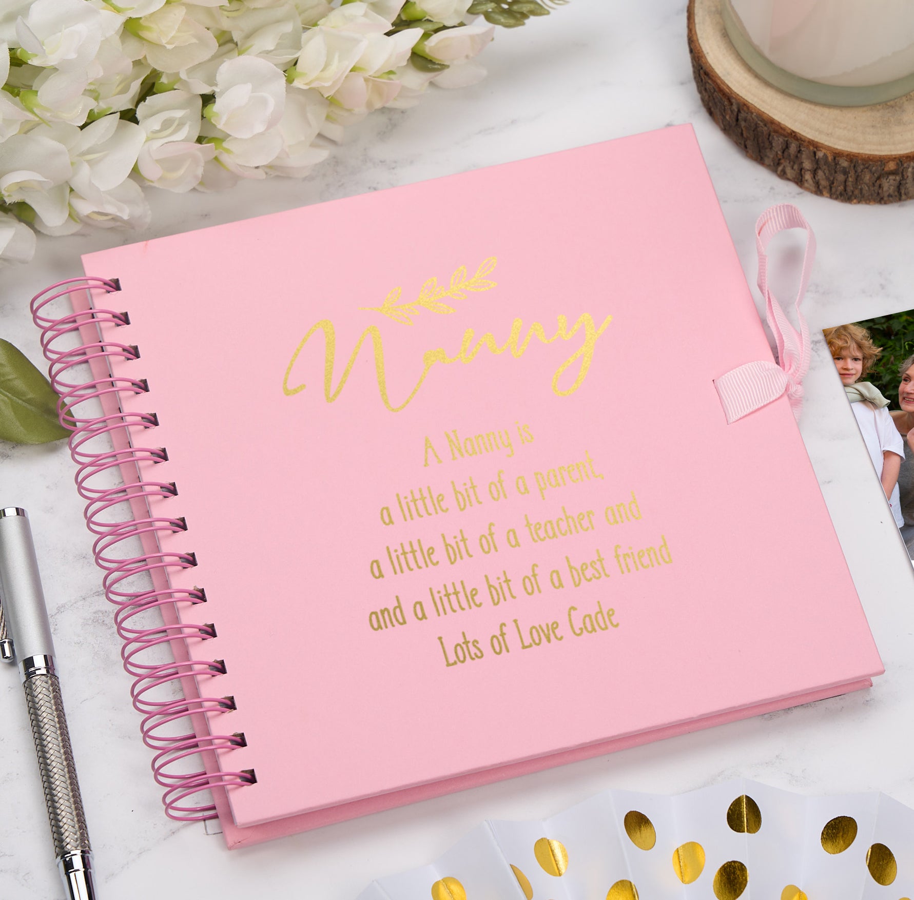 For personalisation please choose the scrapbook colour, state the foil colour, then we require the bottom line, everything else remains the same.
