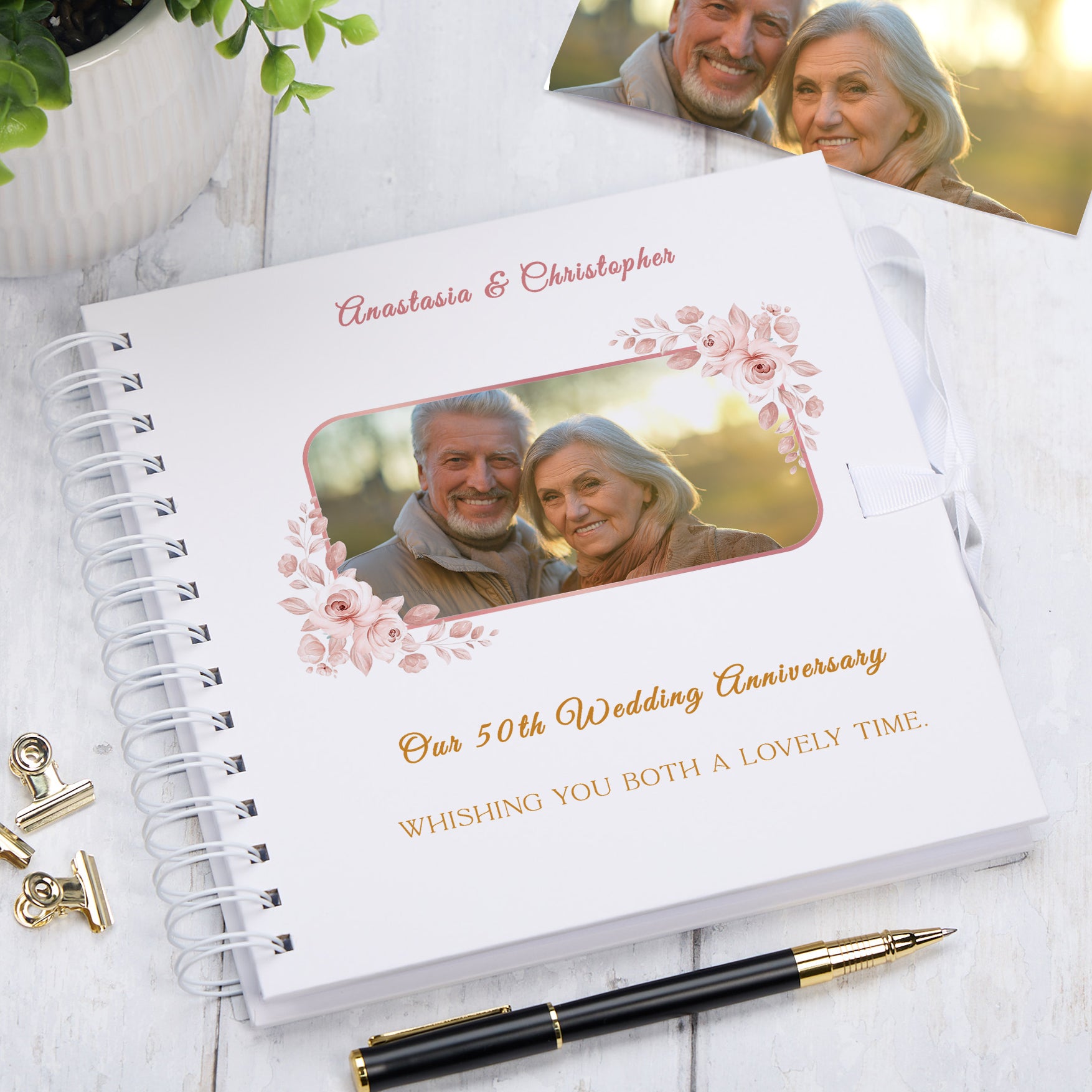 Honour 50 years of marriage with the Personalised 50th Wedding Anniversary Custom Photo Scrapbook. This customizable memory book allows you to preserve your most meaningful moments, combining photos, messages, and keepsakes that celebrate your silver anniversary. Crafted with care and attention to detail, it offers a lasting tribute to your enduring love and shared memories. Perfect as a thoughtful gift or a personal keepsake, this scrapbook makes it easy to reflect on your journey together and treasure your special milestone for years to come.