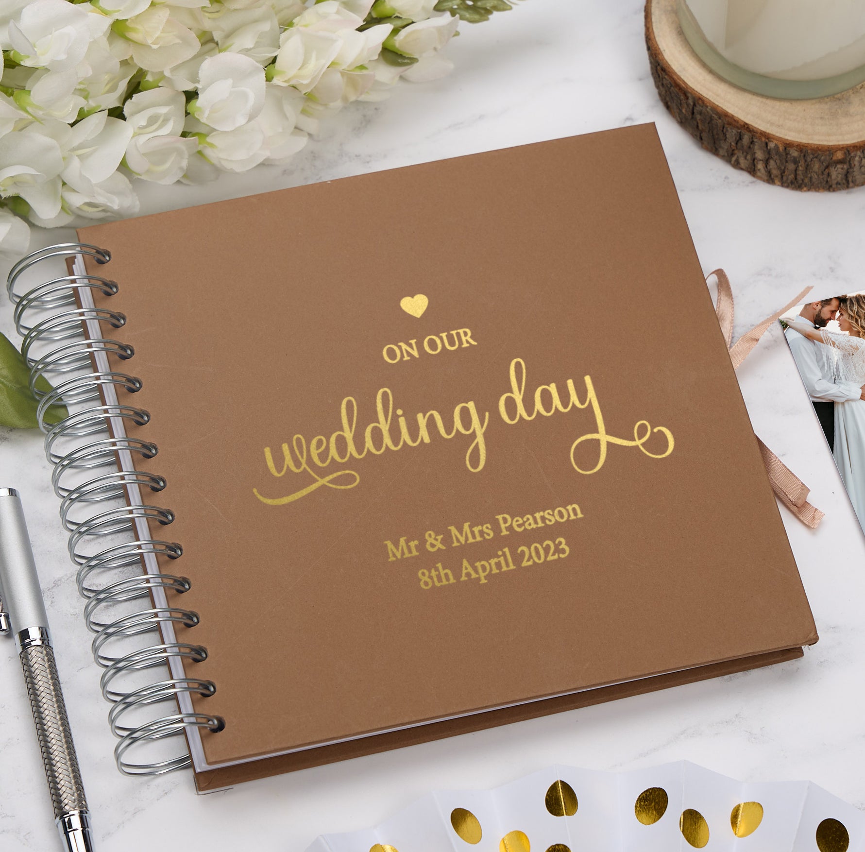 Keep one's memories immortalised in this stunning Spiral Bound Kraft Scrapbook with an eye catching Metallic Foil finish and personalised details. Bring the blank pages to life by adding a variety of papers, embellishments and cardstock to complement personal details such as photographs, cards and other memorabilia. You can stamp in dates and make annotations to the pages easily, and even create fold-out pieces and pockets if you wish!