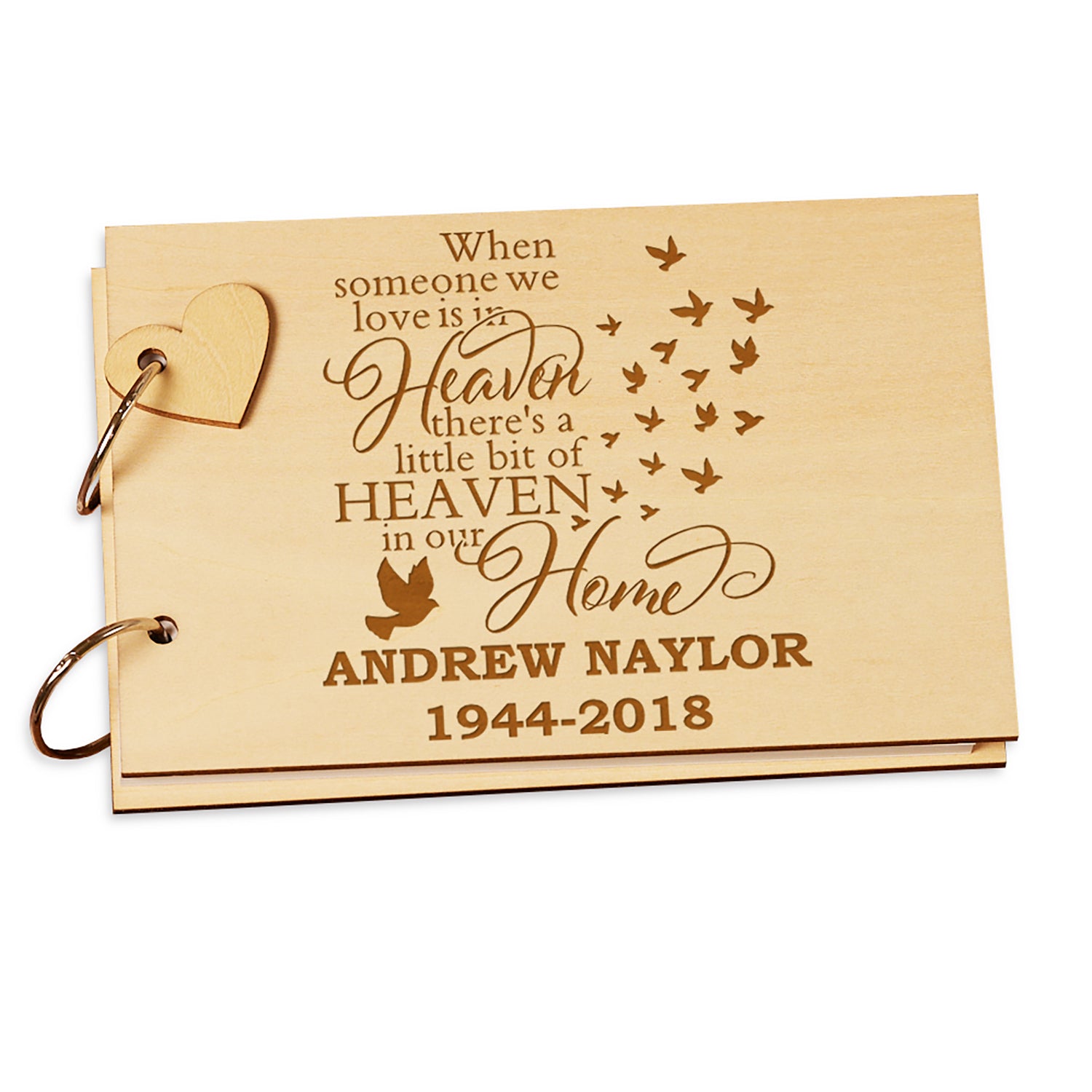 Size: 14.8 x 9.8 cm 30 Pages - More can easily be added. The personalisation is done into the wooden front cover. So in this case we would just need a name and date as shown under the main sentiment, or other wording if needed.