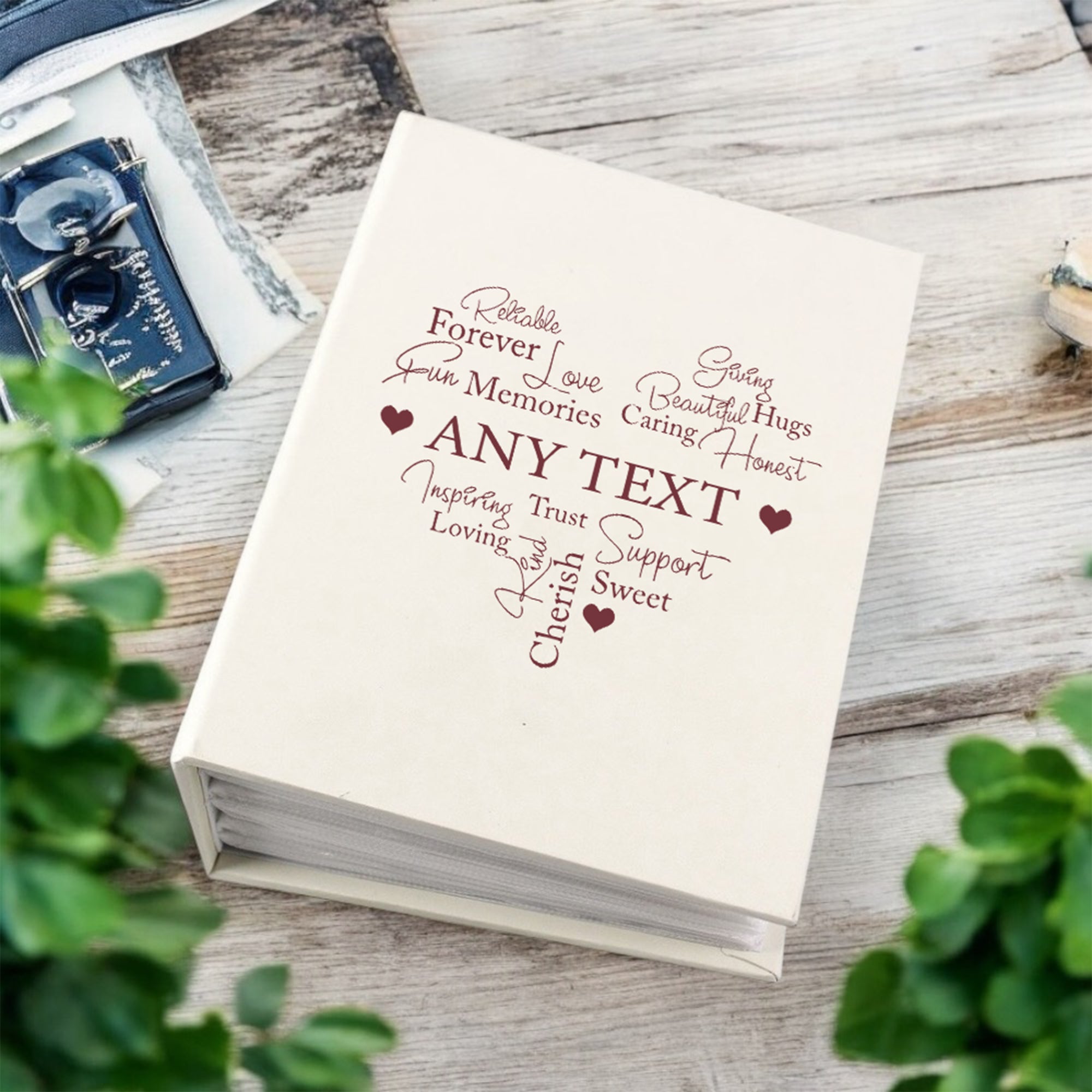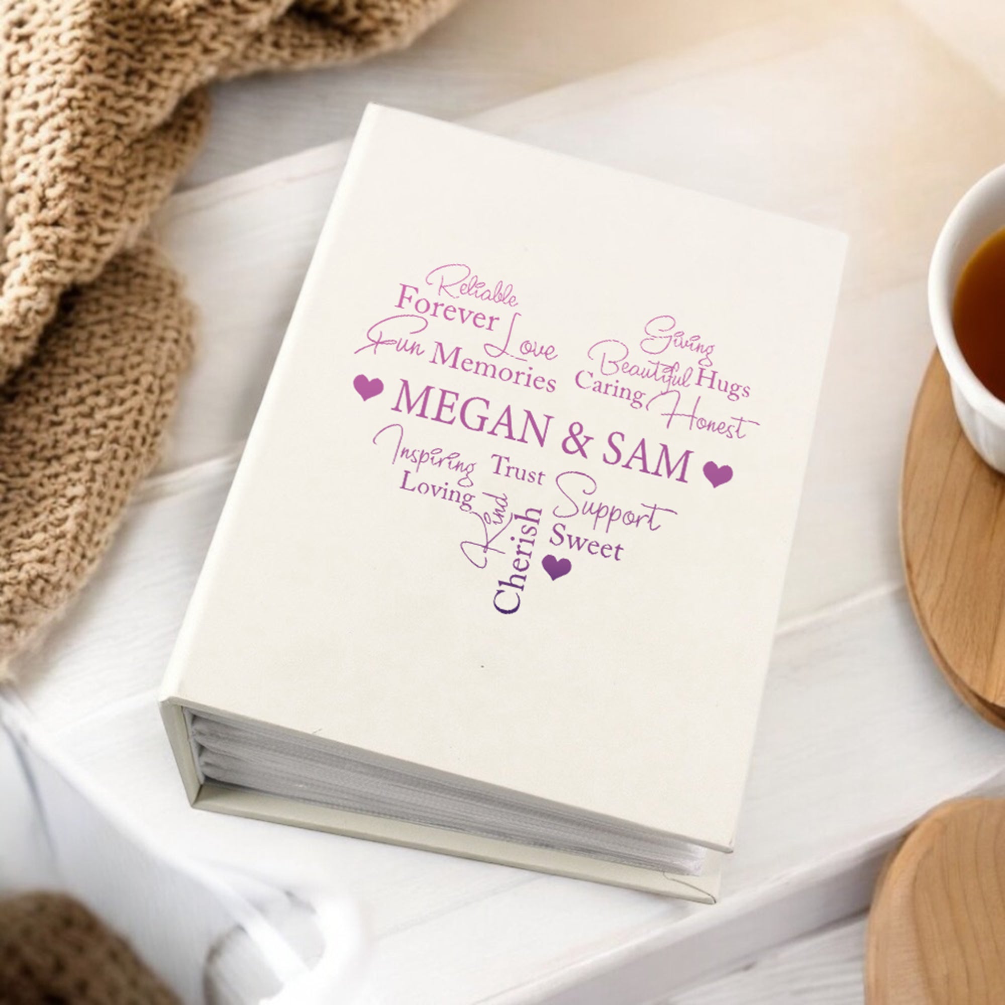Capture and cherish your most cherished moments with your loved one. This Photo Album Gift boasts a stunning word heart design and can store up to 100 6x4 photos with sleeves, making it the perfect choice for showcasing and preserving your favourite memories. And with its high-quality construction, you can rest assured that your photos will be both safe and stunningly presented.