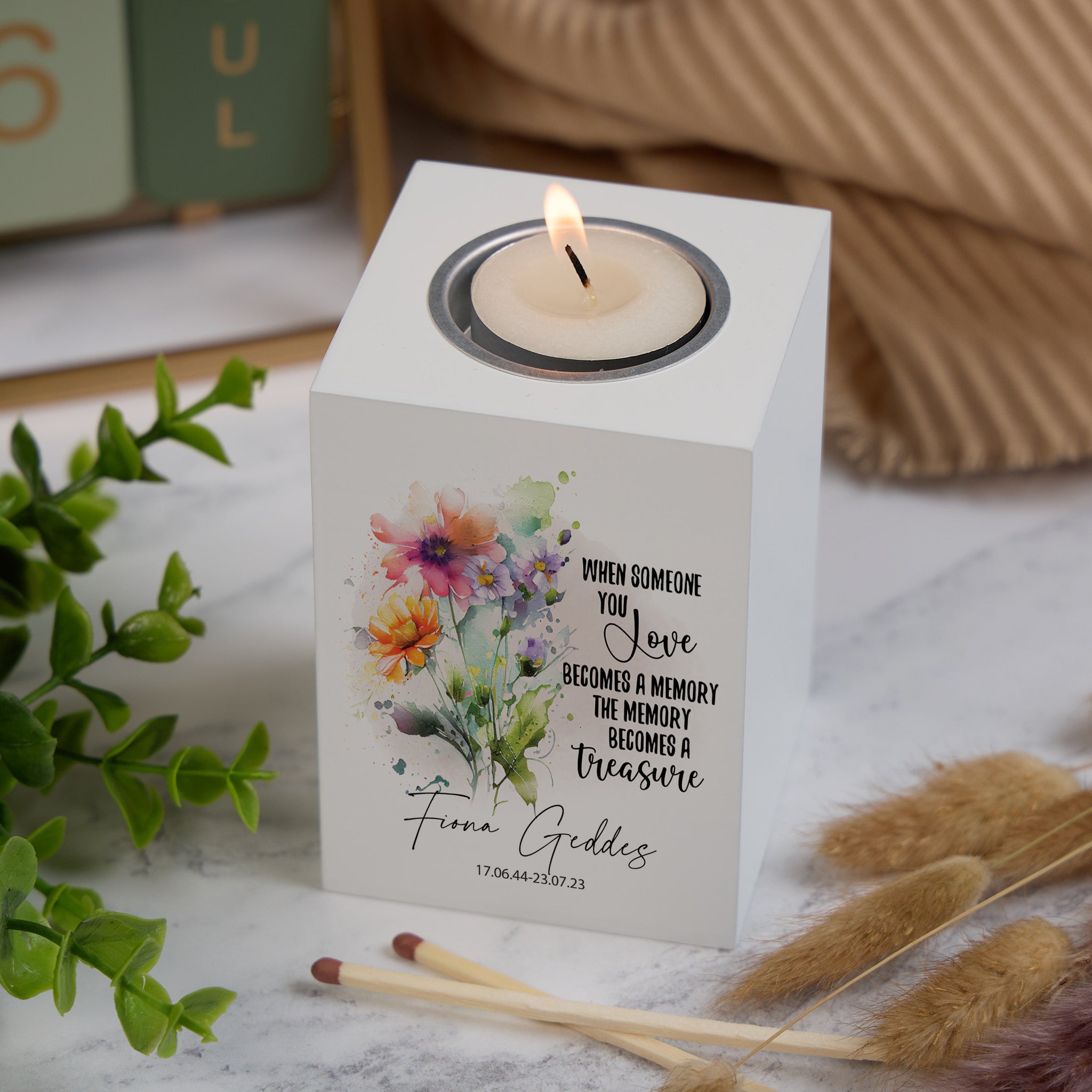 Personalised Remembrance Memorial Tea Light Candle Holder Treasured Love