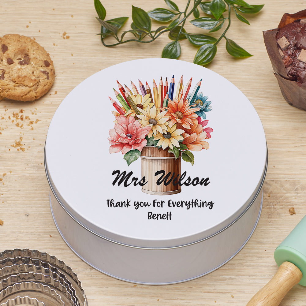 Personalised Teacher Gift Cake Or Cookie Tin With Floral Pot
