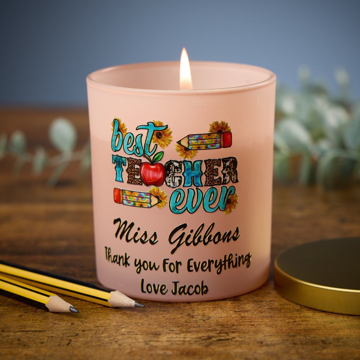 Beautiful Pink Best Teacher Ever Candle Jar Gift
