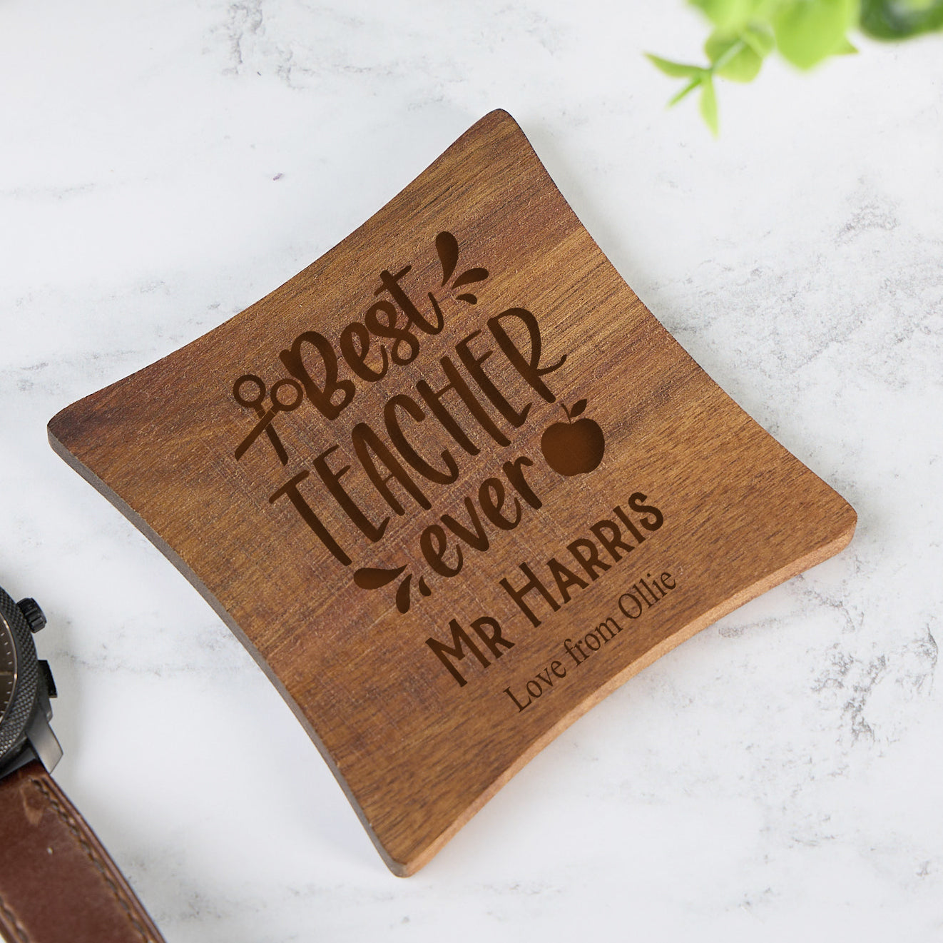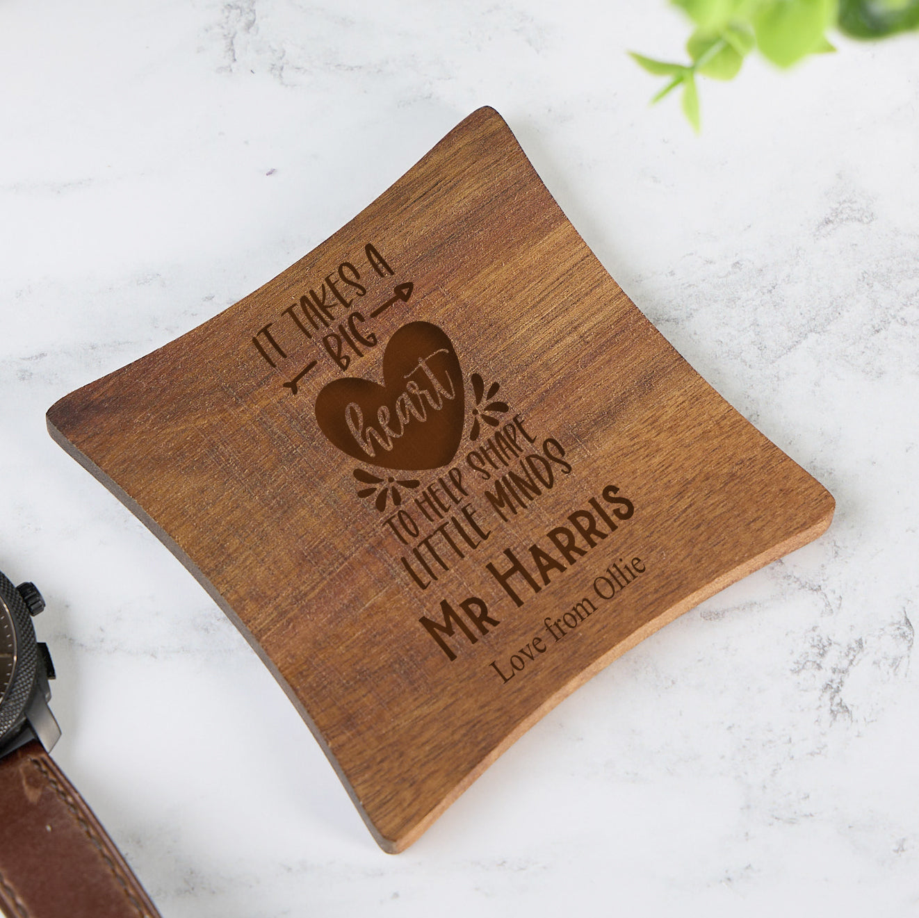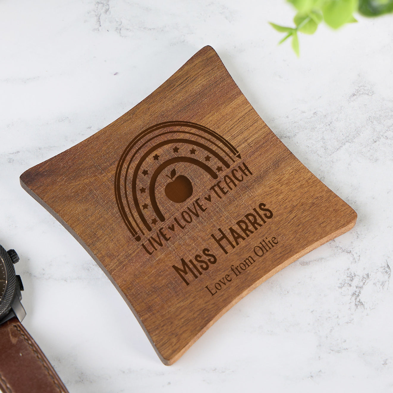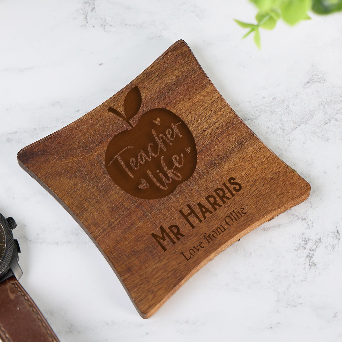 Beautifully handcrafted from durable acacia wood, our personalised coasters are the perfect way to show your appreciation for that special teacher in your life. With a generous size of 10cm, these coasters provide a practical yet elegant solution to protecting surfaces from spills and scratches.