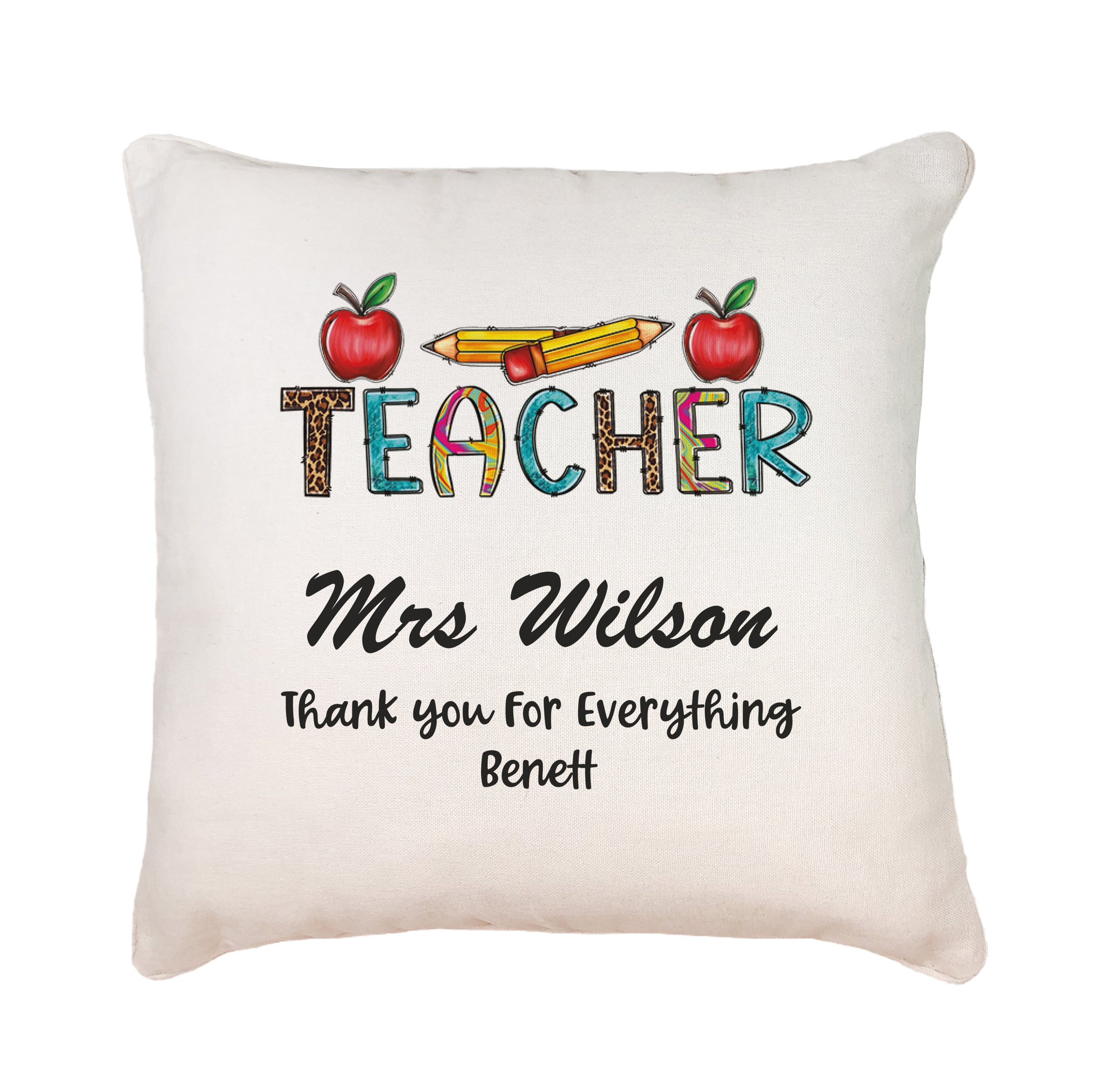 Personalised Teacher Cushion Gift With Pencil and Apples